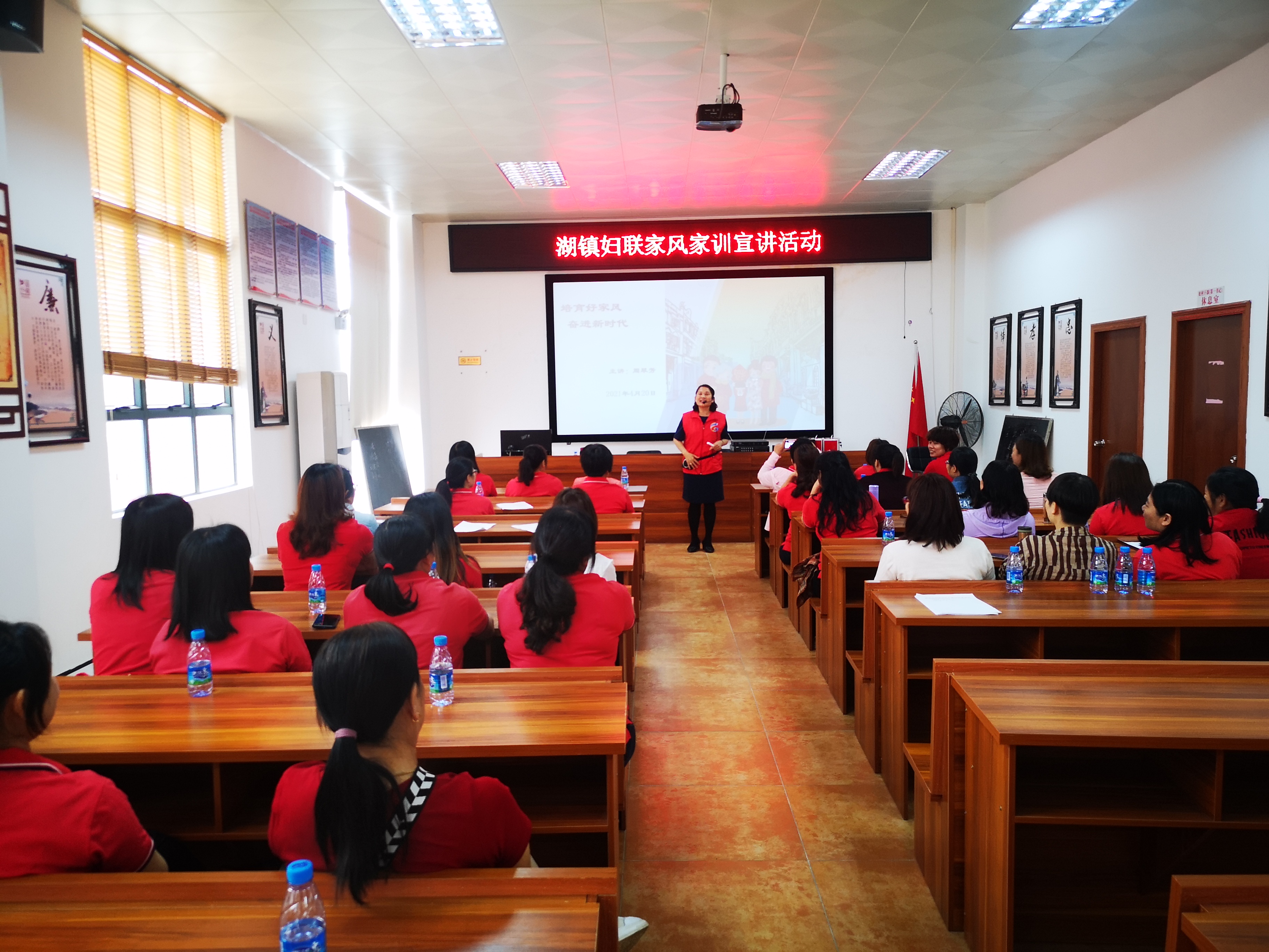 走进峥嵘岁月,回望红色历程,为庆祝中国共产党成立100周年,4月20日上午,湖镇镇组织镇妇联会同37个村(社区)妇联主席到新作塘村开展“唱红乐 观红影 颂党恩”暨“家风家训”宣讲活动。