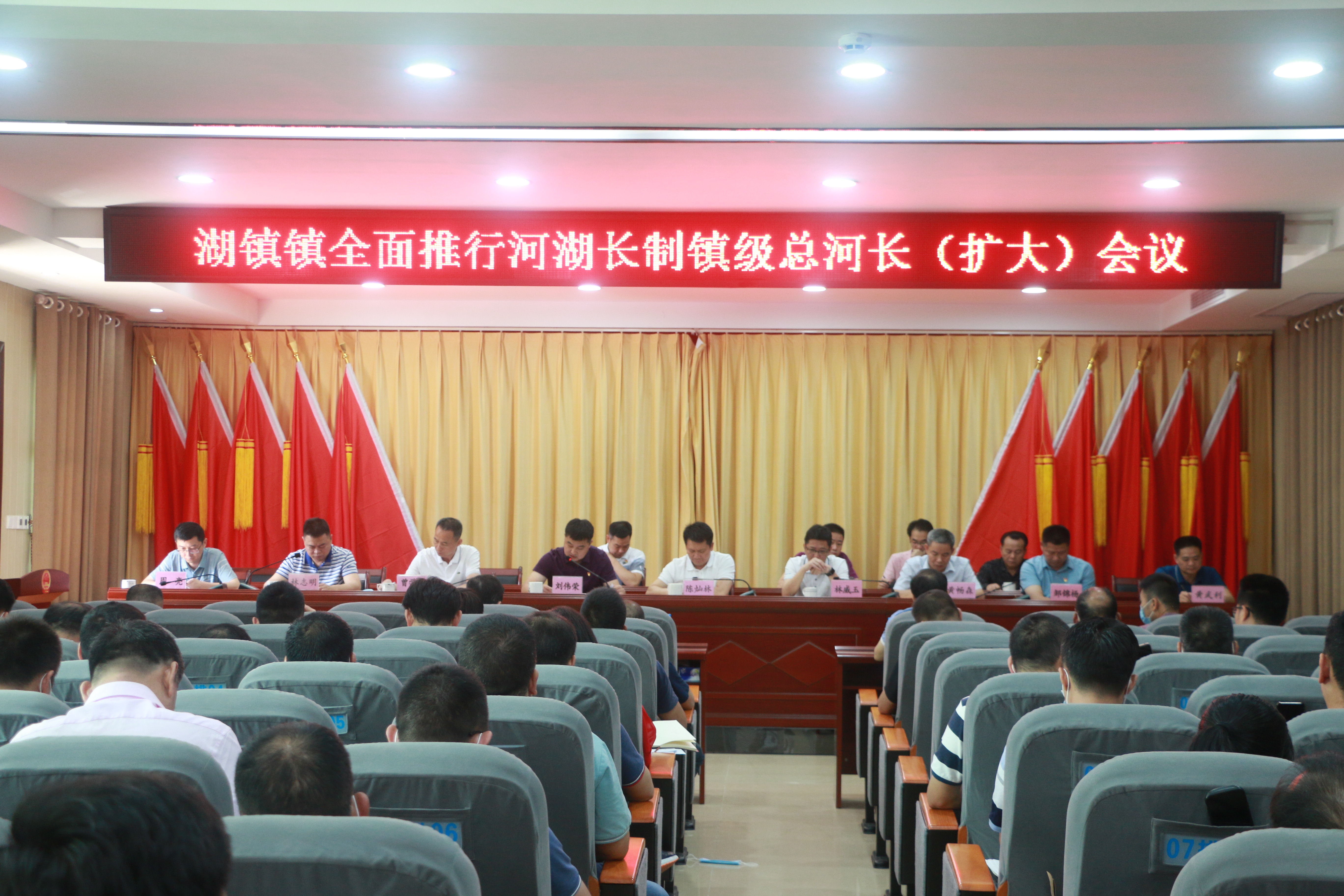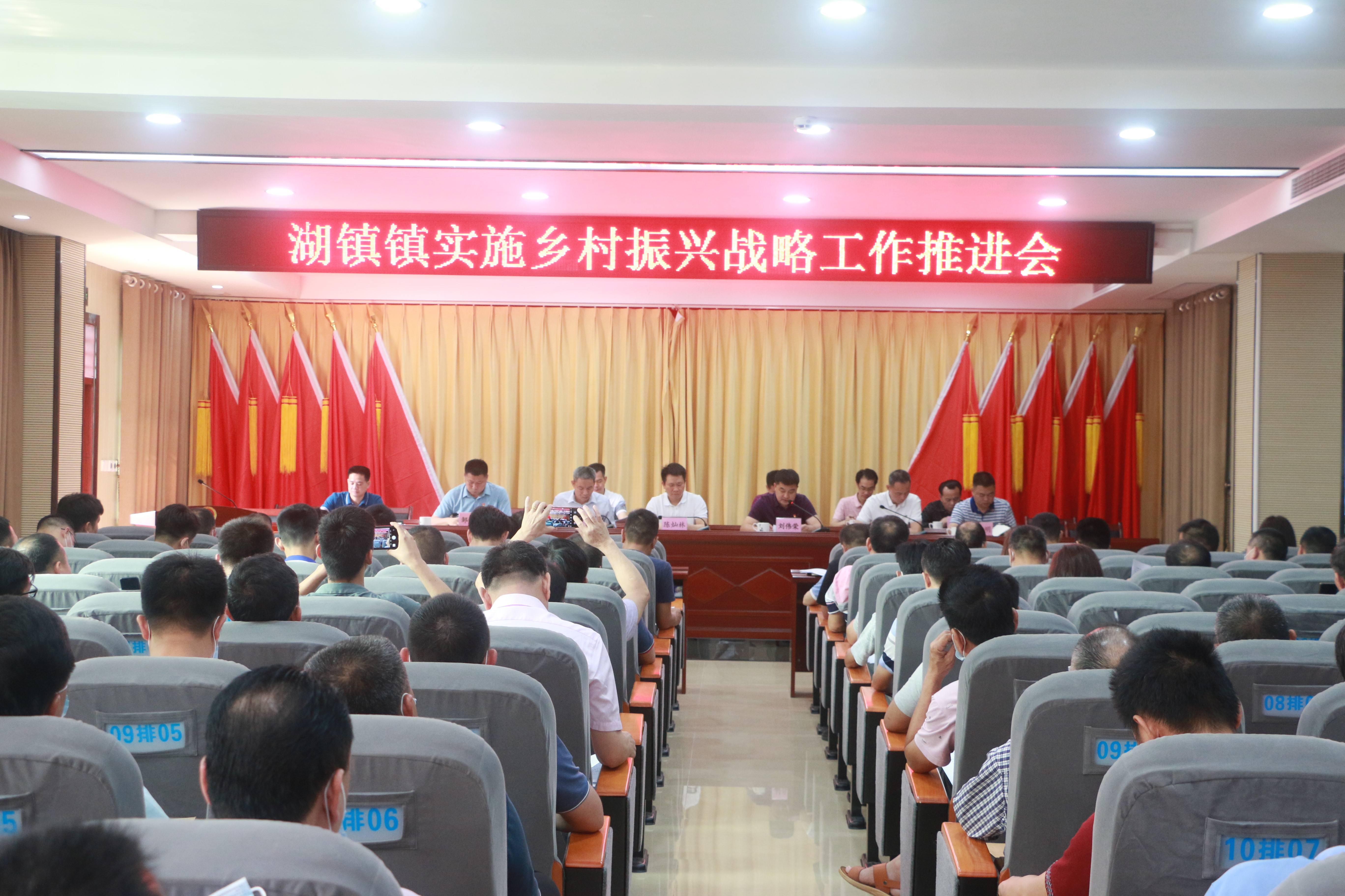 2020年4月23日上午,湖镇镇在镇政府公共服务中心二楼会议室召开重点工作推进大会,对近期我镇乡村振兴、防汛、河湖长制、安全生产工作进行了部署。镇委书记陈灿林等三套班子成员、显岗水库管理局局长林威玉及镇驻村领导、部门负责人、驻村组长、各村(社区)书记、分管乡村振兴干部约150人参加了会议。会议由镇委副书记、镇长刘伟荣主持。