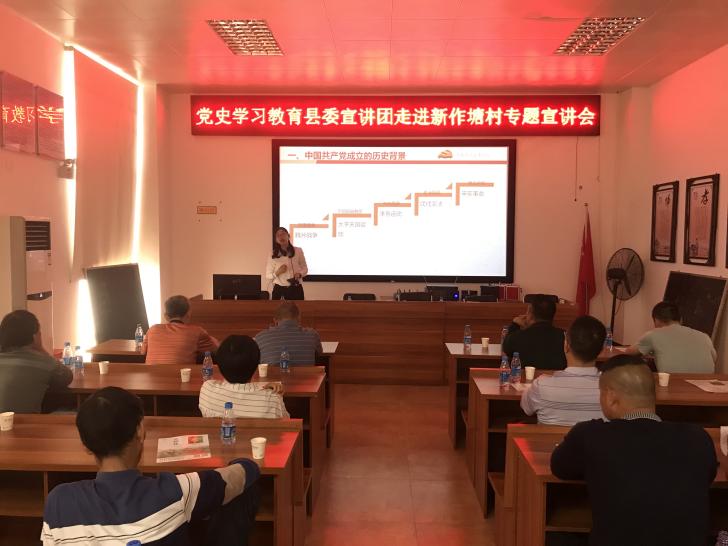 2021年4月28日上午,新作塘村新时代文明实践站精心组织开展党史学习教育宣讲活动,朴实的话语、鲜活的案例、新颖的形式,让现场的党员干部受益匪浅,备受鼓舞,切实推动党史学习教育“入脑入心”。