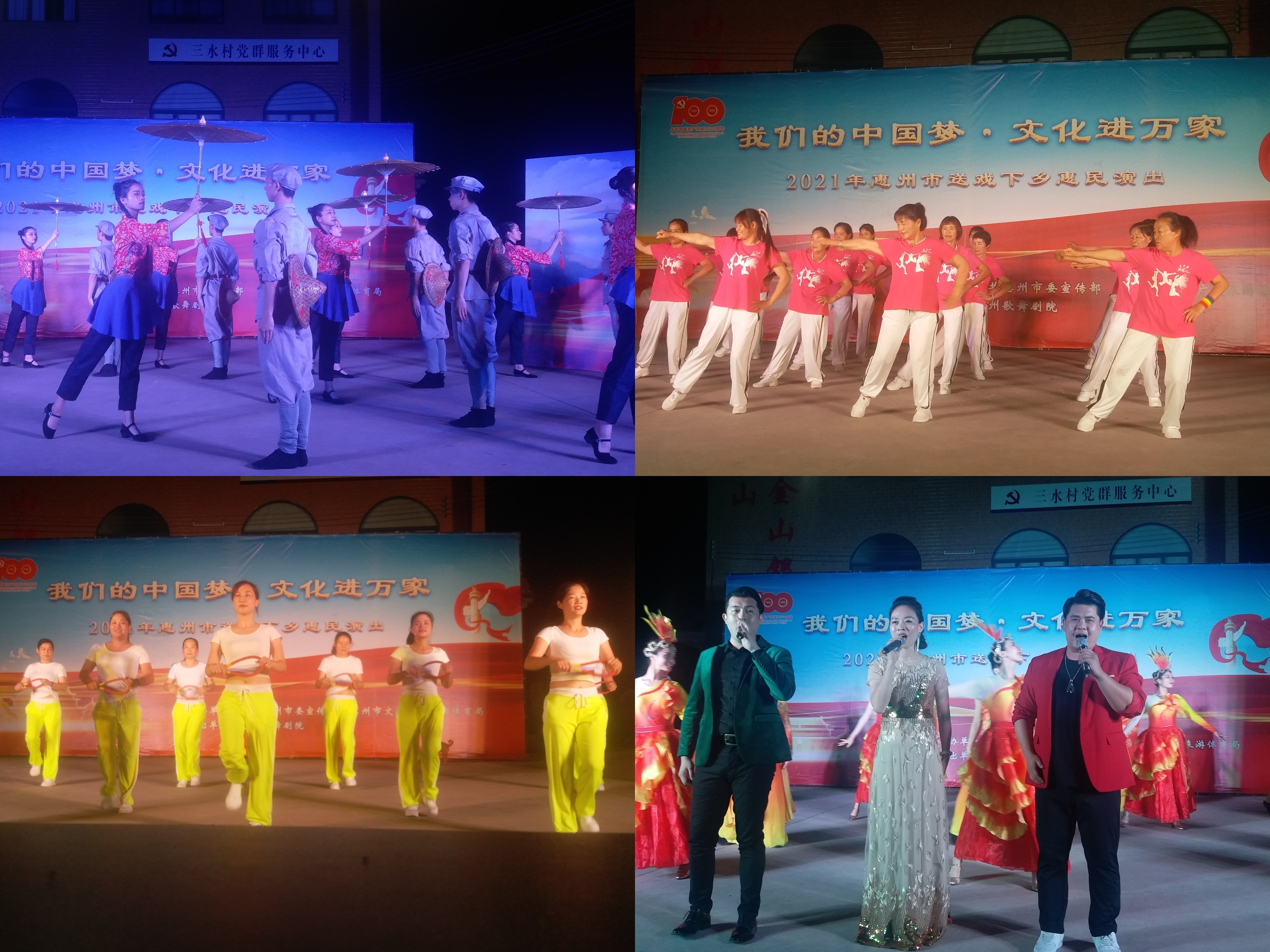 5月21日晚,为了庆祝中国共产党成立100周年,根据市委宣传部和市文化广电旅游体育局的工作安排,惠州歌舞剧院来到湖镇镇三水村联合开展“我们的中国梦、文化进万家”惠民演出。