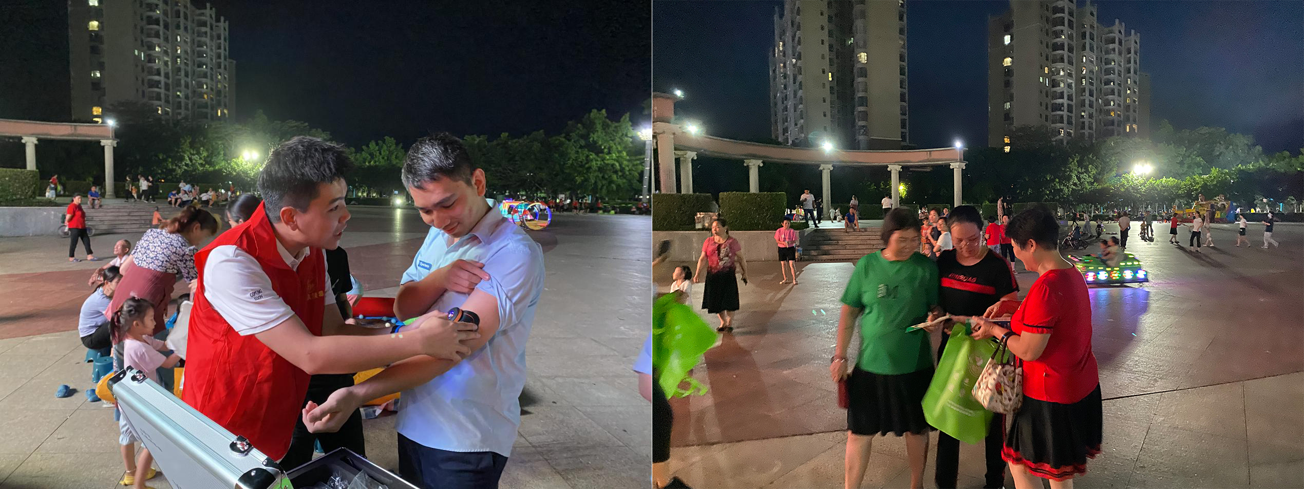 虎门销烟日主题宣传活动以“传承销烟精神,共享健康生活”为主题,此次活动通过摆摊设点、拉横幅、派发宣传手册的方式进行。在活动现场,工作人员利用仿真毒品模型及VR模拟体验设备向居民群众讲解毒品的危害性以及吸食毒品后的戒断反应状态。禁毒大妈宣传队向在广场散步和跳舞的居民群众派发禁毒宣传手册和环保袋,详细向居民群众讲解禁毒相关知识和毒品危害,并邀请在广场的居民群众来到摊位前了解仿真毒品及体验VR模拟设备。有效提高了居民群众对毒品危害的认识,传承虎门销烟的精神,共同营造安定的生活环境。