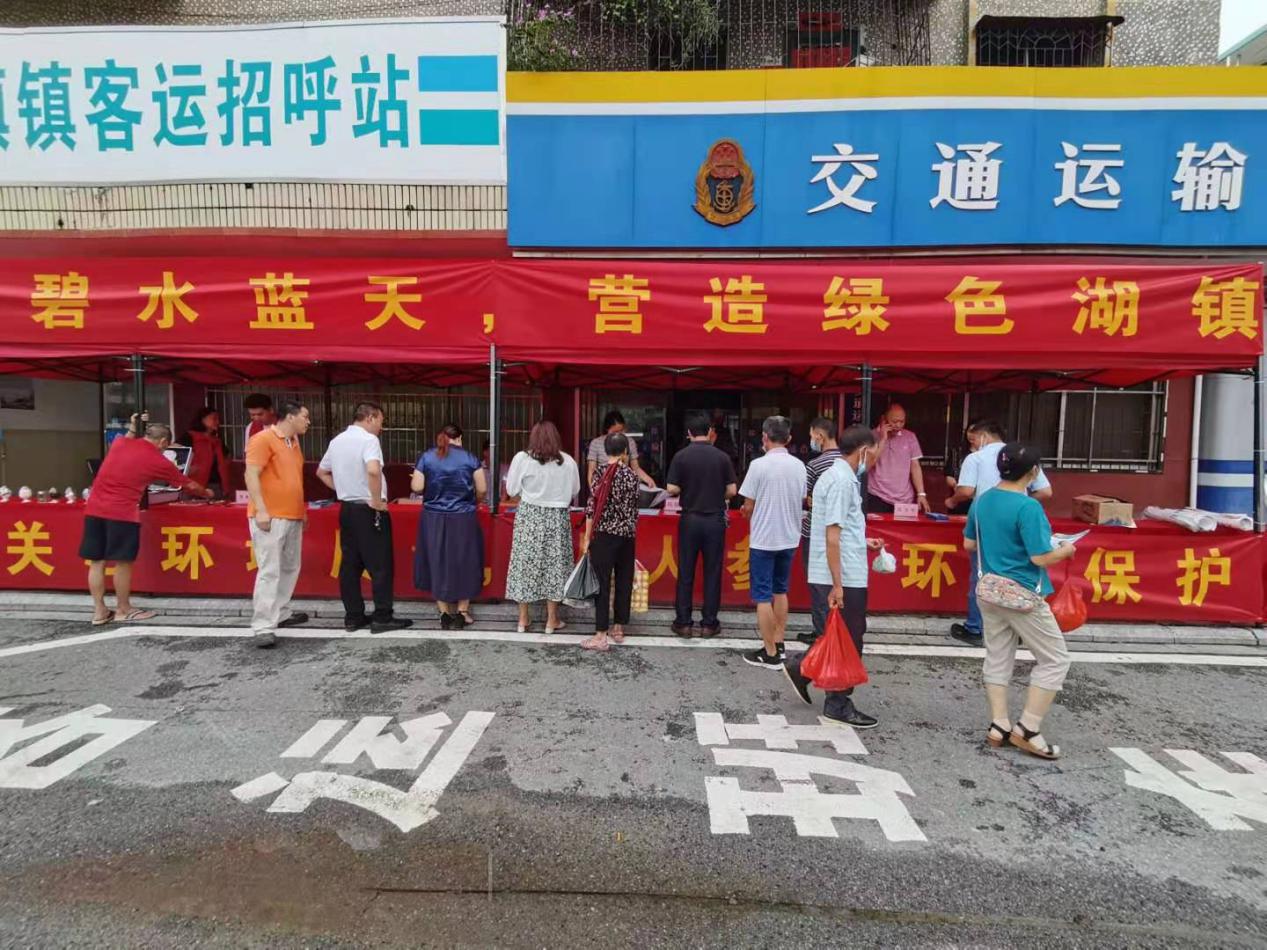 活动现场悬挂了横幅、 张贴了海报、 设置了咨询台, 工作人员通过发放宣传单、 普法小册子、 环保小知识有奖问答等方式, 向往来群众宣讲《民法典》 中绿色原则的精神内容、 《环境保护法》 等相关法律法规, 重点讲解了公民在环境保护中的权利和义务、 相关环境保护的案例, 呼吁大家积极行动起来, 关心、 支持、 参与环保工作, 在学法、 懂法、 守法的同时, 从身边小事做起, 共同履行环保责任, 努力为湖镇环境质量的不断改善添砖加瓦。