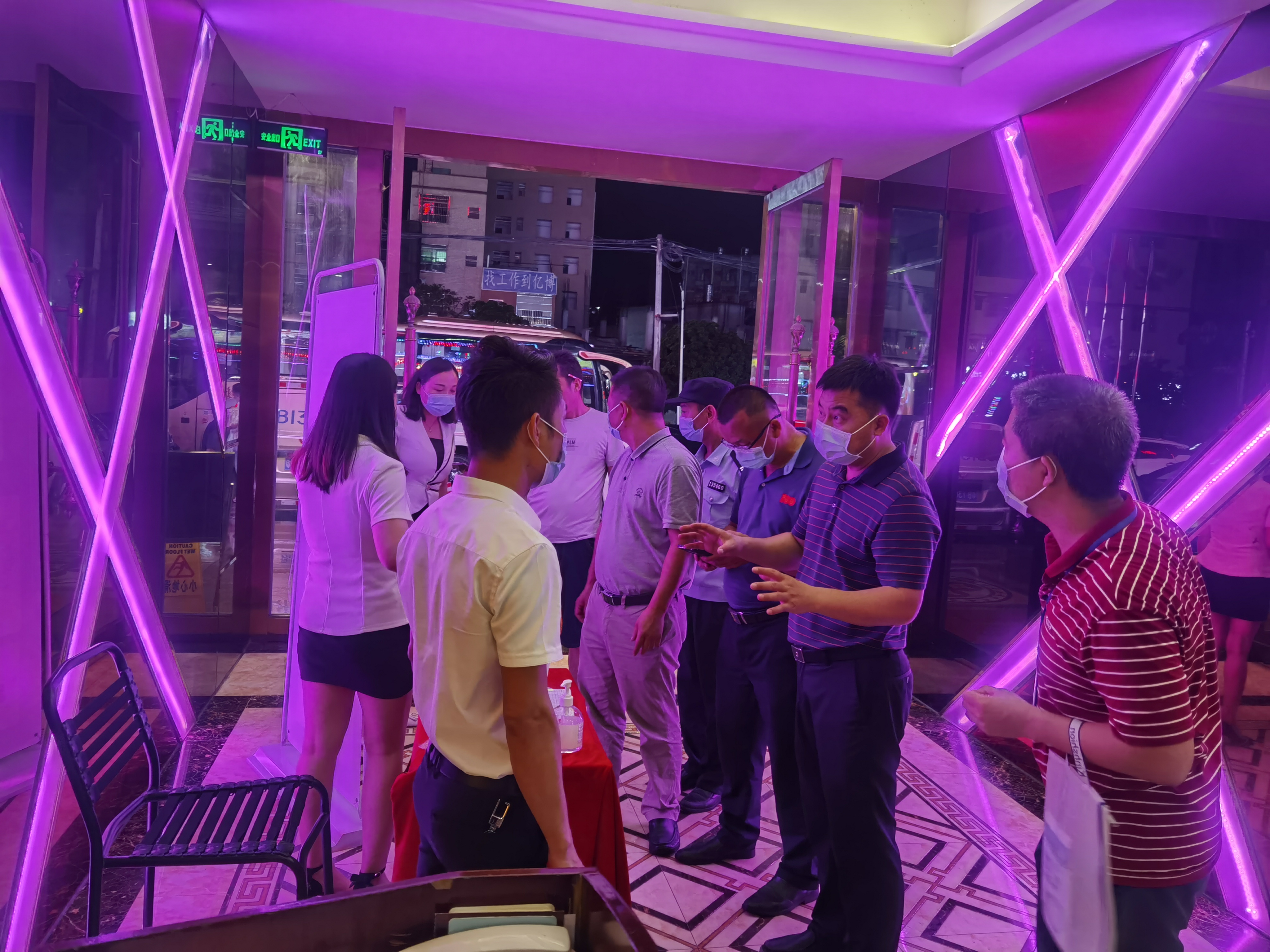 每到一处,行动组要求各文娱场所要充分认识当前疫情防控的复杂形势,坚决摒弃麻痹思想和侥幸心理,不断增强防控意识;要密切留意国内疫情防控信息,严格按照相关要求,做好人员登记、体温监测、戴口罩、消杀等工作;要进一步完善安全管理制度,强化员工教育培训,抓好安全宣传教育。