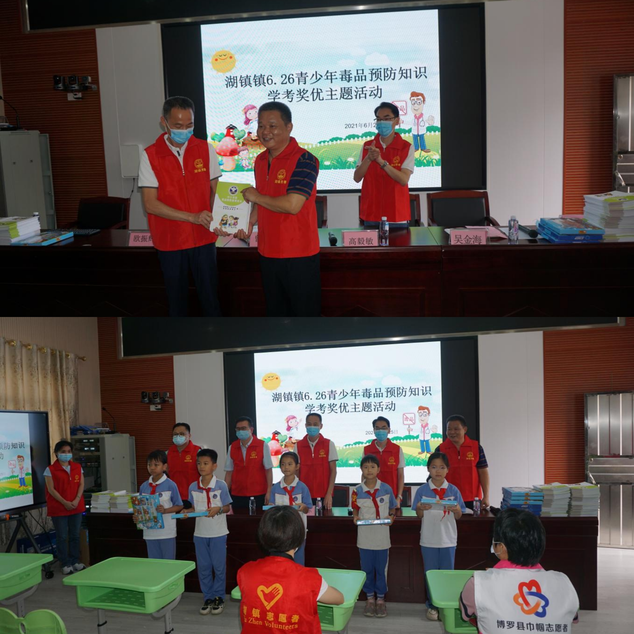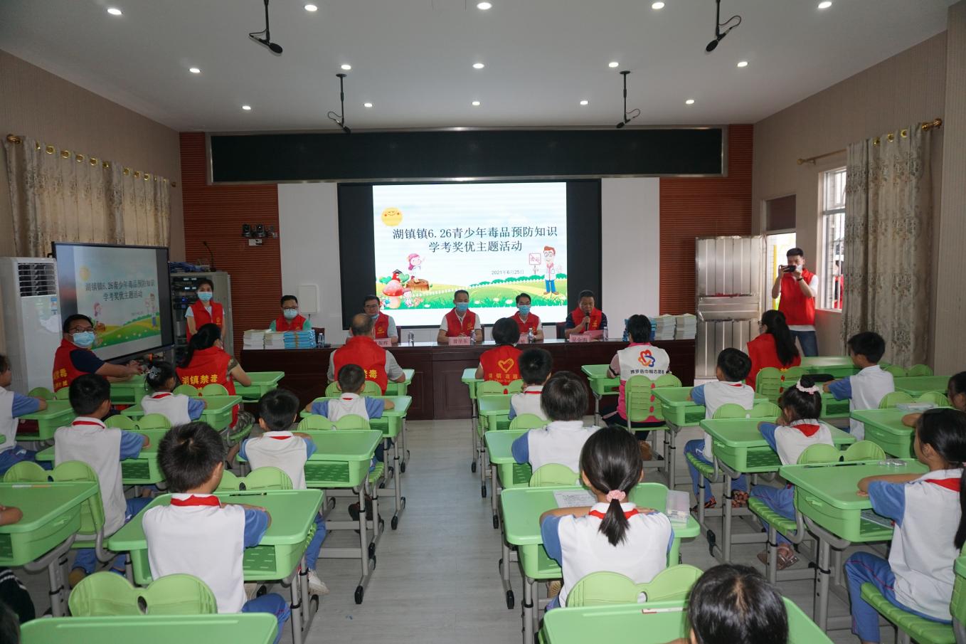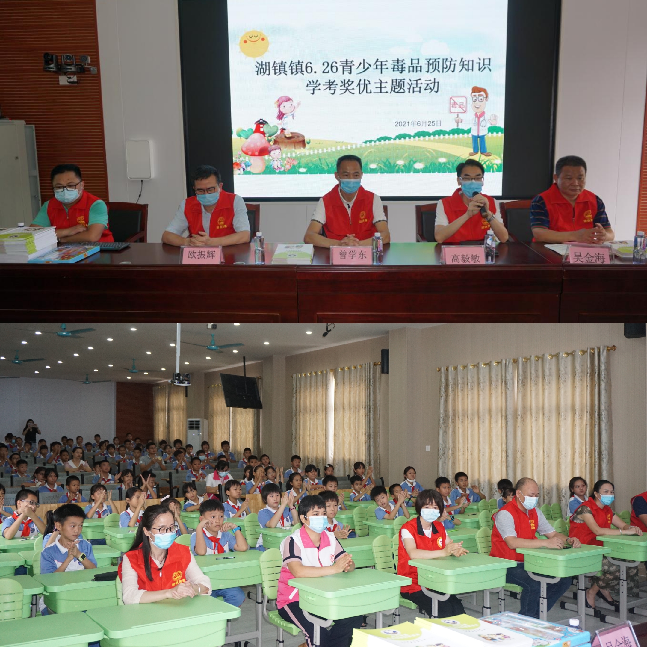 为深入贯彻落实习近平总书记关于防范新型毒品对青少年危害工作的重要指示精神,6月25日上午,在第34个国际禁毒日到来之际,湖镇镇结合“平安关爱联合管控帮教”工作,联合各中小学校和禁毒、司法、妇联、团委等部门以及社会公益团体,在全镇中小学校开展“6.26”青少年毒品预防知识学考奖优主题活动,2所中学、7所小学共约1200师生参与活动。镇委副书记曾学东、镇委委员高毅敏、副镇长欧振辉等镇领导出席活动。