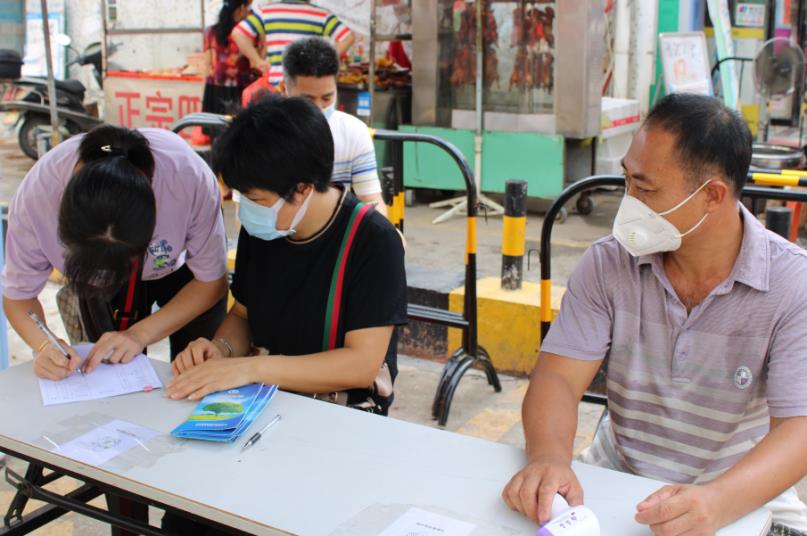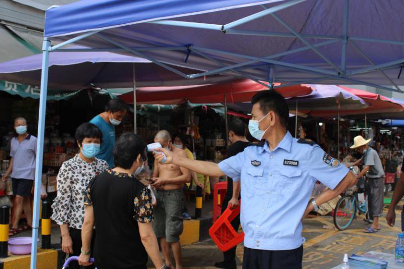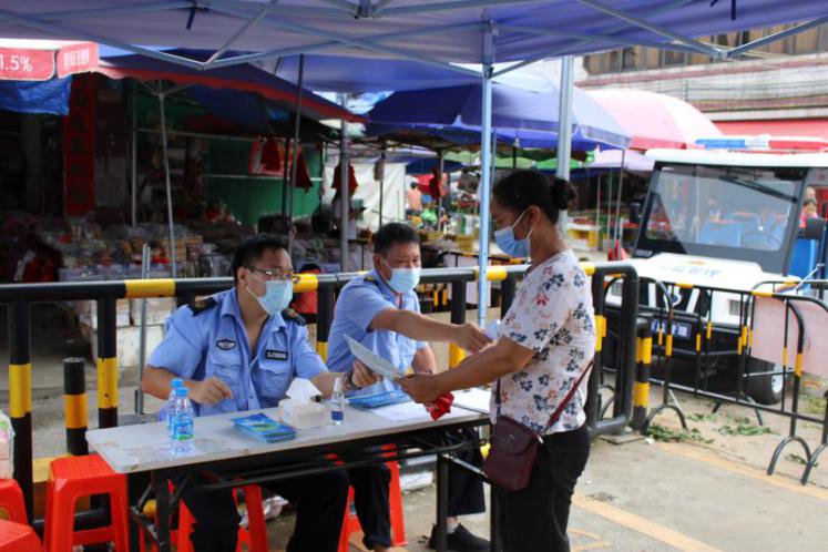 此次疫情防控工作主要针对出入市场的居民以及市场周边的商户,要求大家注意安全防护,戴口罩,勤洗手,不聚集。在南北两个入口设临时卡点,为每一位进入市场的居民测量体温,同时派发宣传册,并耐心地反复提醒居民戴好口罩,做好防护。