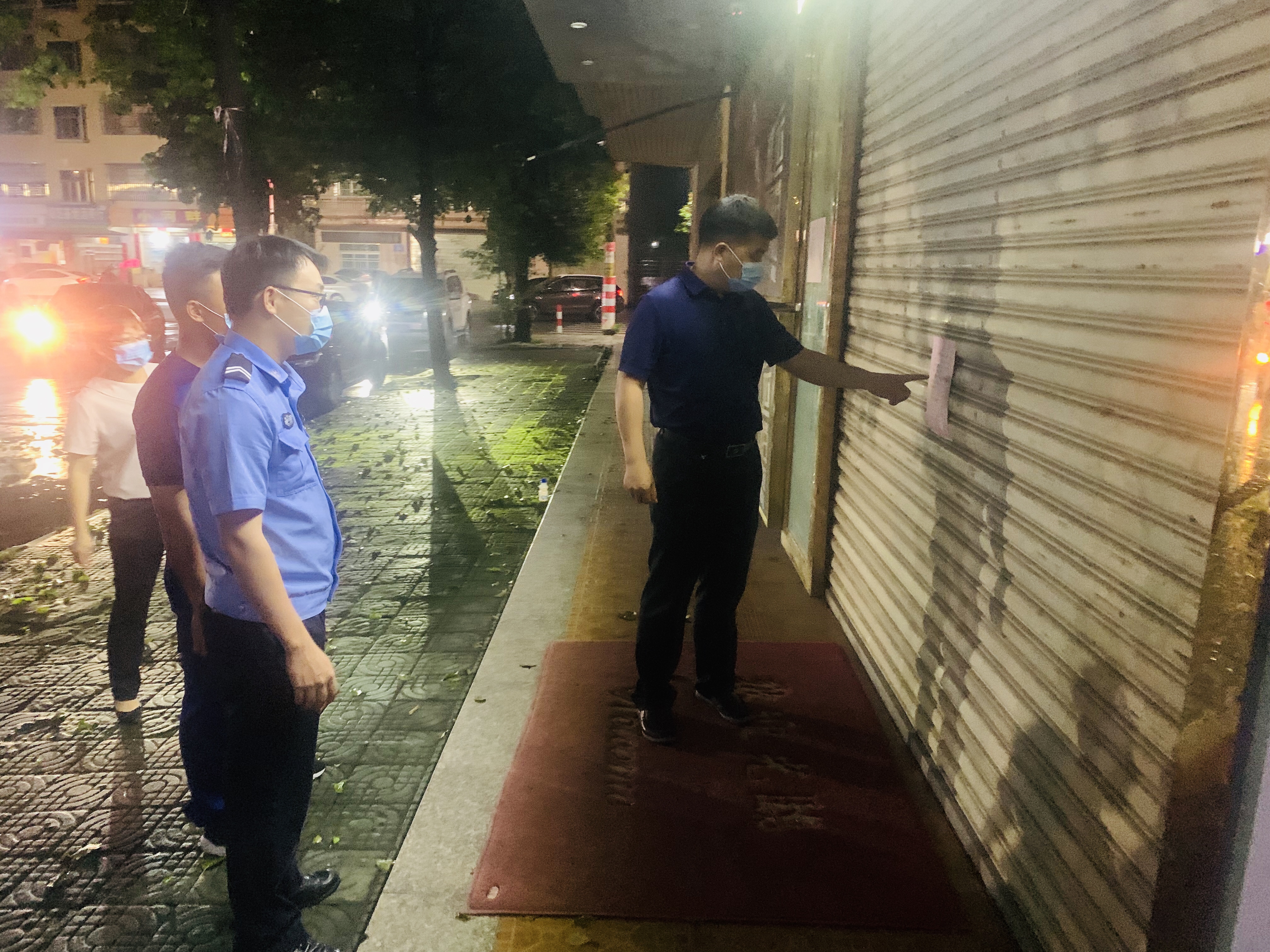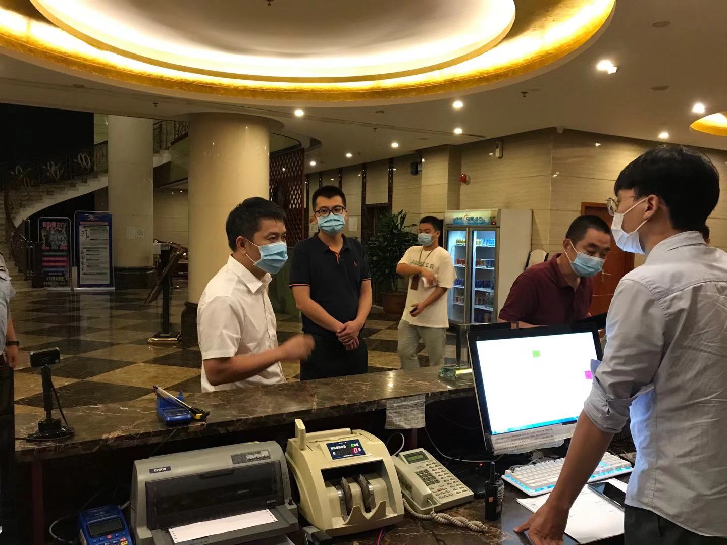 鉴于当前国内疫情有蔓延趋势,为进一步加强新冠疫情常态化防控,精准做好“外防输入,内防反弹”工作,进一步筑牢防控屏障,全力保障人民群众生命安全。2021年8月9日晚8时,镇委书记刘伟荣,副书记、镇长人选陈建强,党委委员、副镇长人选聂毅,党委委员黄碧萍等带领文化站、公安派出所、安监所市场监督管理所出动人员20人,分2个小组对辖区娱乐场所进行疫情防控突击检查。