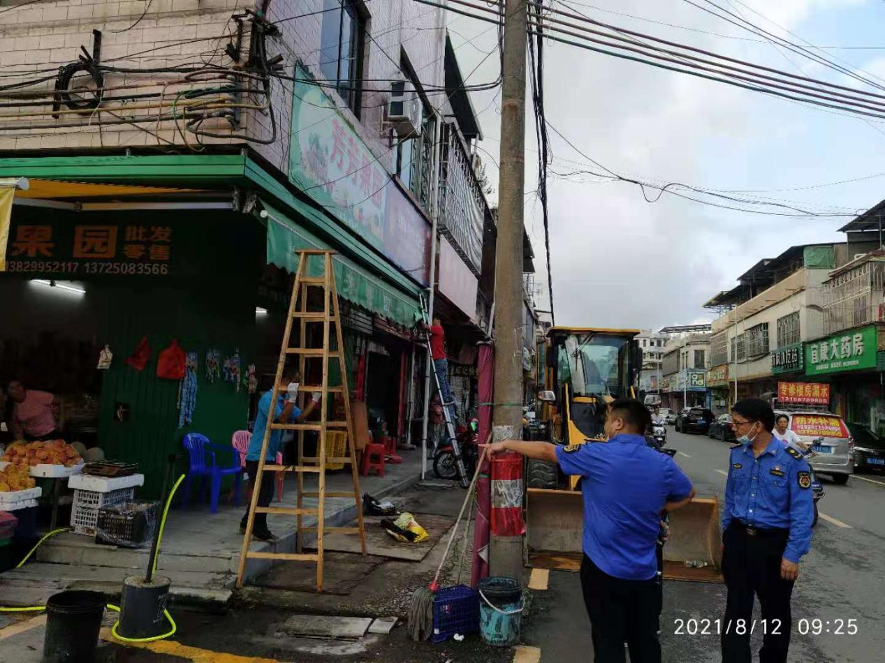在乱堆乱放方面,我镇执法人员逐街逐店对商贩进行口头宣传和教育劝导,主动协助清理占道物品;对于无视城市管理法律法规的部分商户,明确告知占道经营、随意摆卖是违法行为,不仅影响交通秩序,而且极易造成交通堵塞,要求立即停止占道经营行为,并现场整改到指定区域进行规范经营或停放。