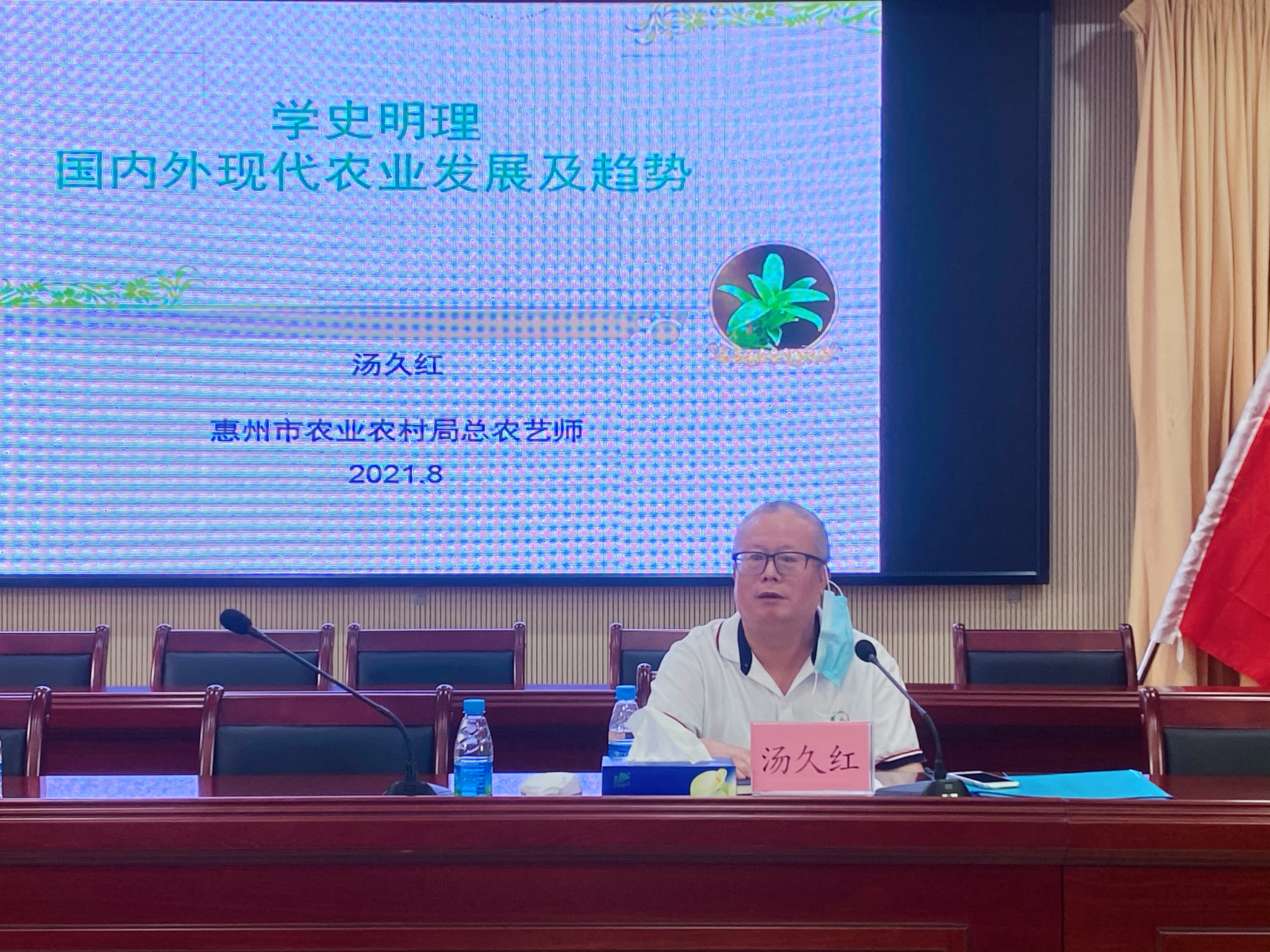 8月19日上午,镇委党校特邀请惠州市农业农村局总农艺师、惠州市镇街“百人讲师团”汤久红老师到我镇委党校开展《学史明理 国内外现代农业发展及趋势》专题党课,镇政府干部、村(社区)书记、主任、入党积极分子约50人参加。