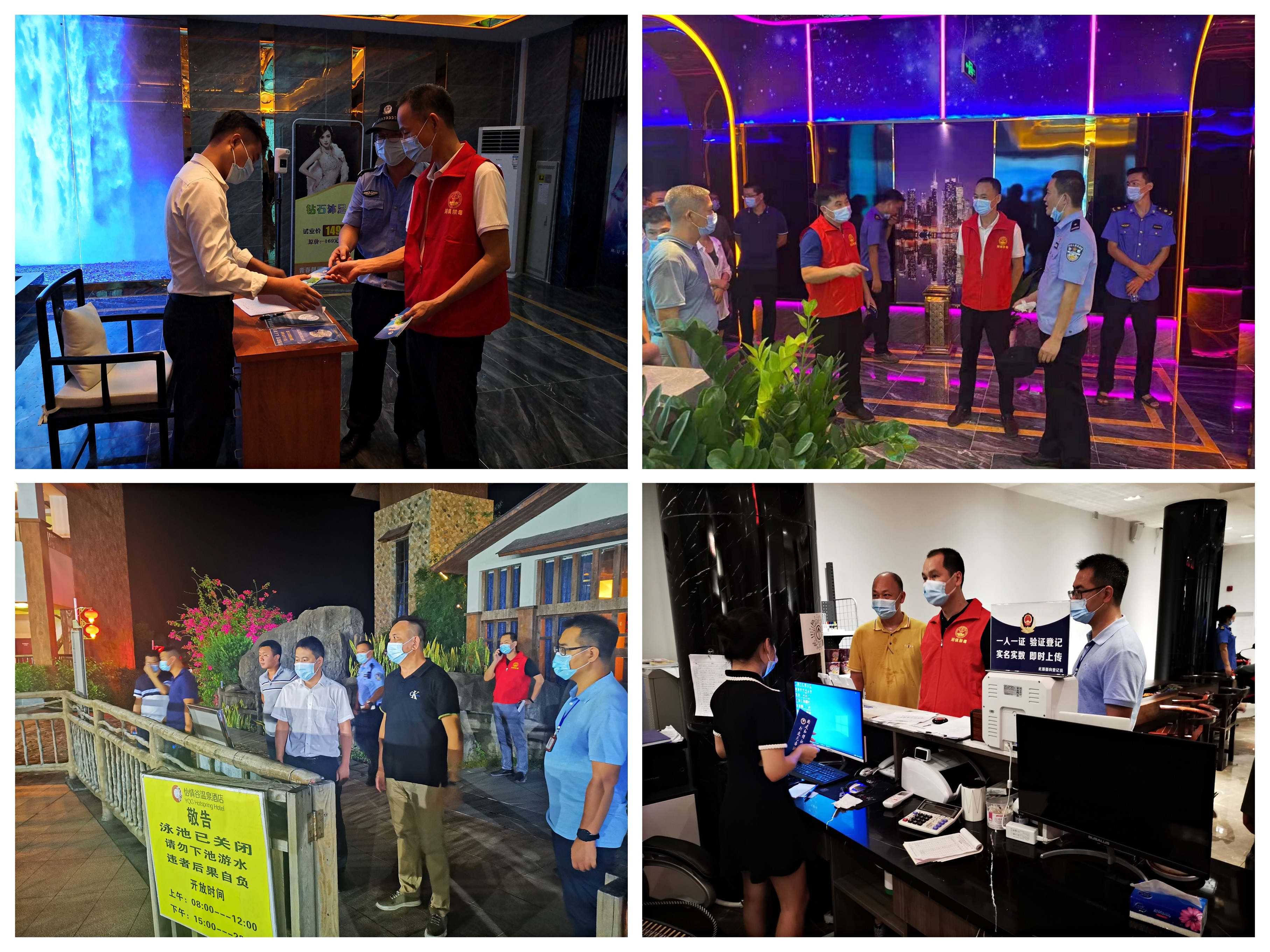 行动中,参加人员分成两组,分别由主要领导带队到湖镇、响水两片区进行排查,主要深入到辖区内娱乐场所、酒店、旅馆、出租屋、林场、废弃厂房等辖区内的可疑场所。一方面,排查组向有关场所了解情况,检查营业执照、经营场所是否规范等;另一方面,排查组开展扫黑除恶、禁毒等相关知识宣传,向商户、群众发放禁毒宣传手册,讲解相关法律法规。