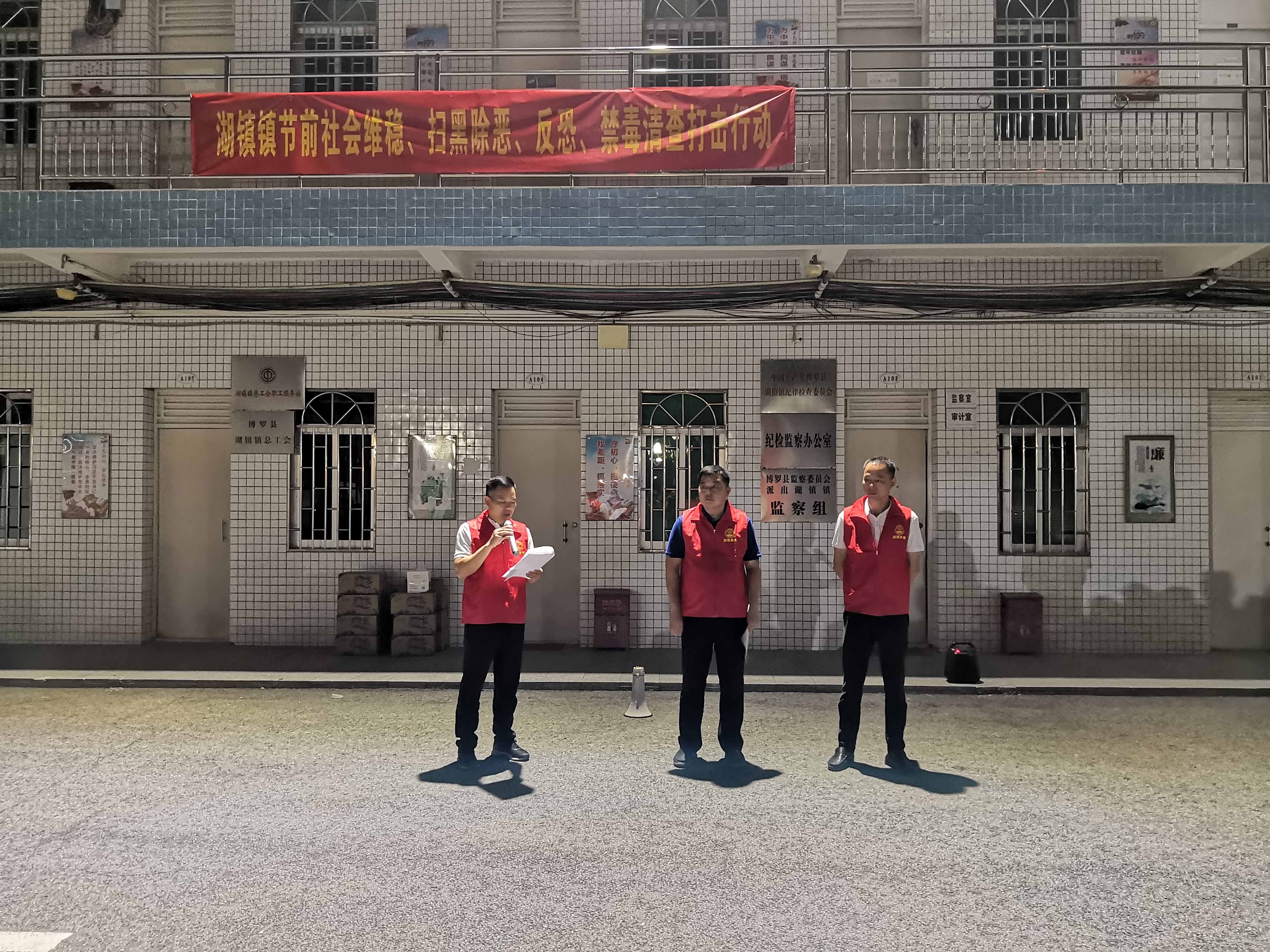 行动前,县委政法委副书记曾学东表示了对湖镇镇社会维稳、扫黑除恶、反恐、禁毒清查工作的肯定,他指出,确保国庆期间社会大局和谐稳定是当前重要的政治任务,行动中,各职能部门要听从指挥、协同作战,同时,也要文明执法、公正司法。接下来,要采取多种形式持续开展各项工作,保持排查打击日常化,形成社会维稳长效机制,为湖镇人民群众创造获得感、幸福感、安全感。
