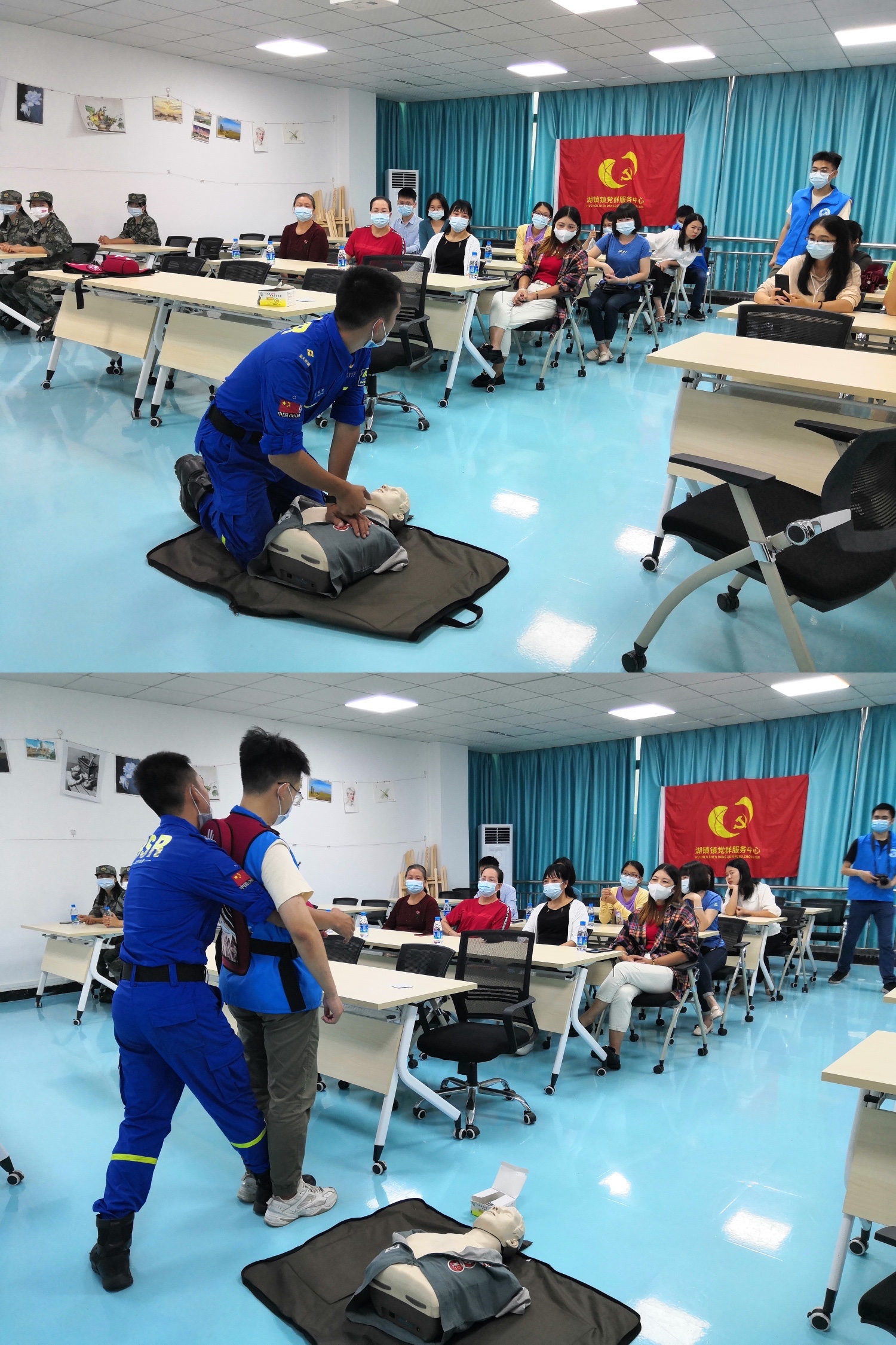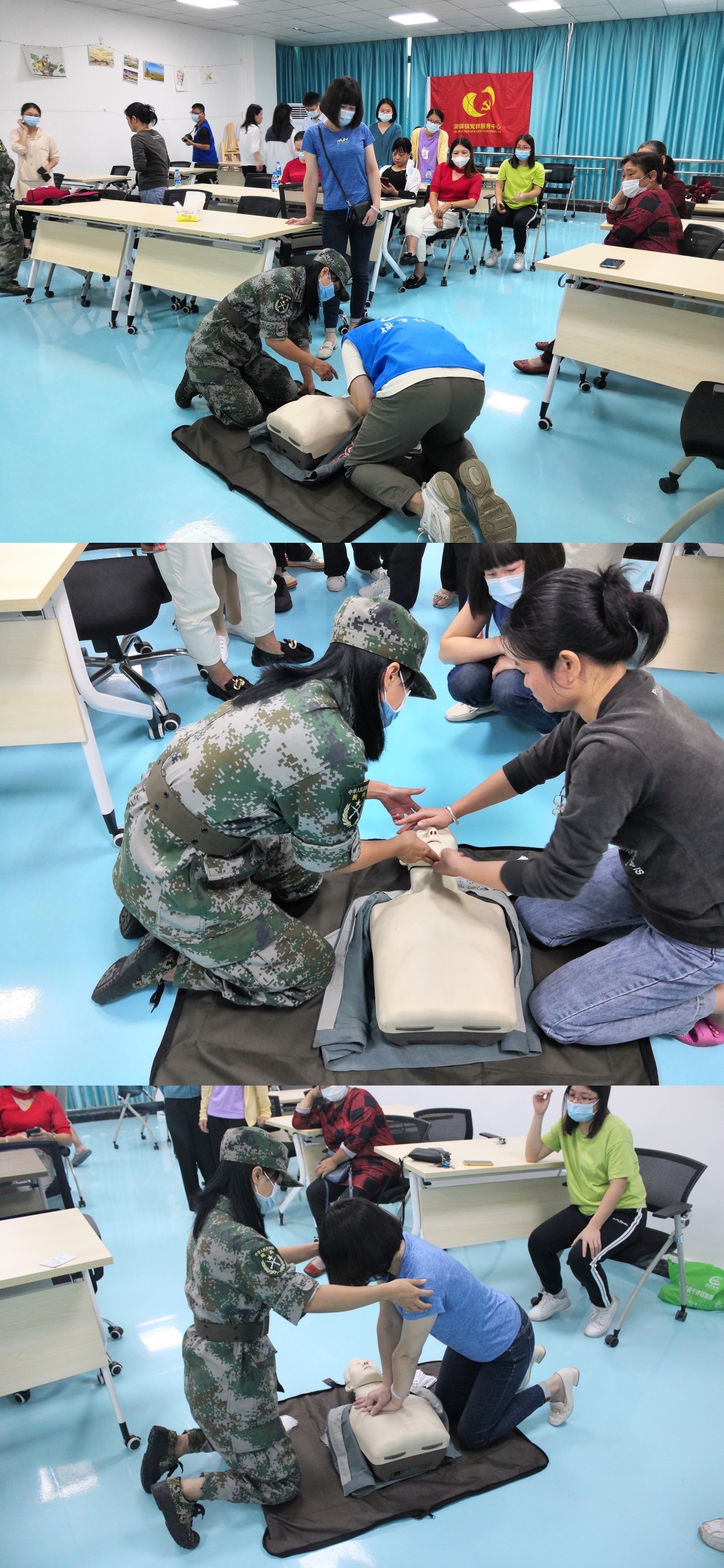 活动邀请了惠州市蓝天救援队许炳荣教官围绕CPR急救和海姆立克急救两个板块的内容等应急救护知识进行专业授课。许教官强调,意外随时可能发生在我们身边,当紧急情况出现在面前时,要及时判断并把握救护的”黄金四分钟”,并模拟如何在不同情况下进行急救救护。在培训过程中,许教官结合自己日常工作中遇到的生动鲜活实例与通俗易懂的语言,向群众详细讲解了如何应对和处理一些日常生活中的突发情况,如何在有效的抢救时间内进行应急救护。同时,通过模拟演练,教练团队逐一纠正群众在实际操作中的问题,帮助大家充分掌握每个步骤的动作要领,切实提高应急救护能力。