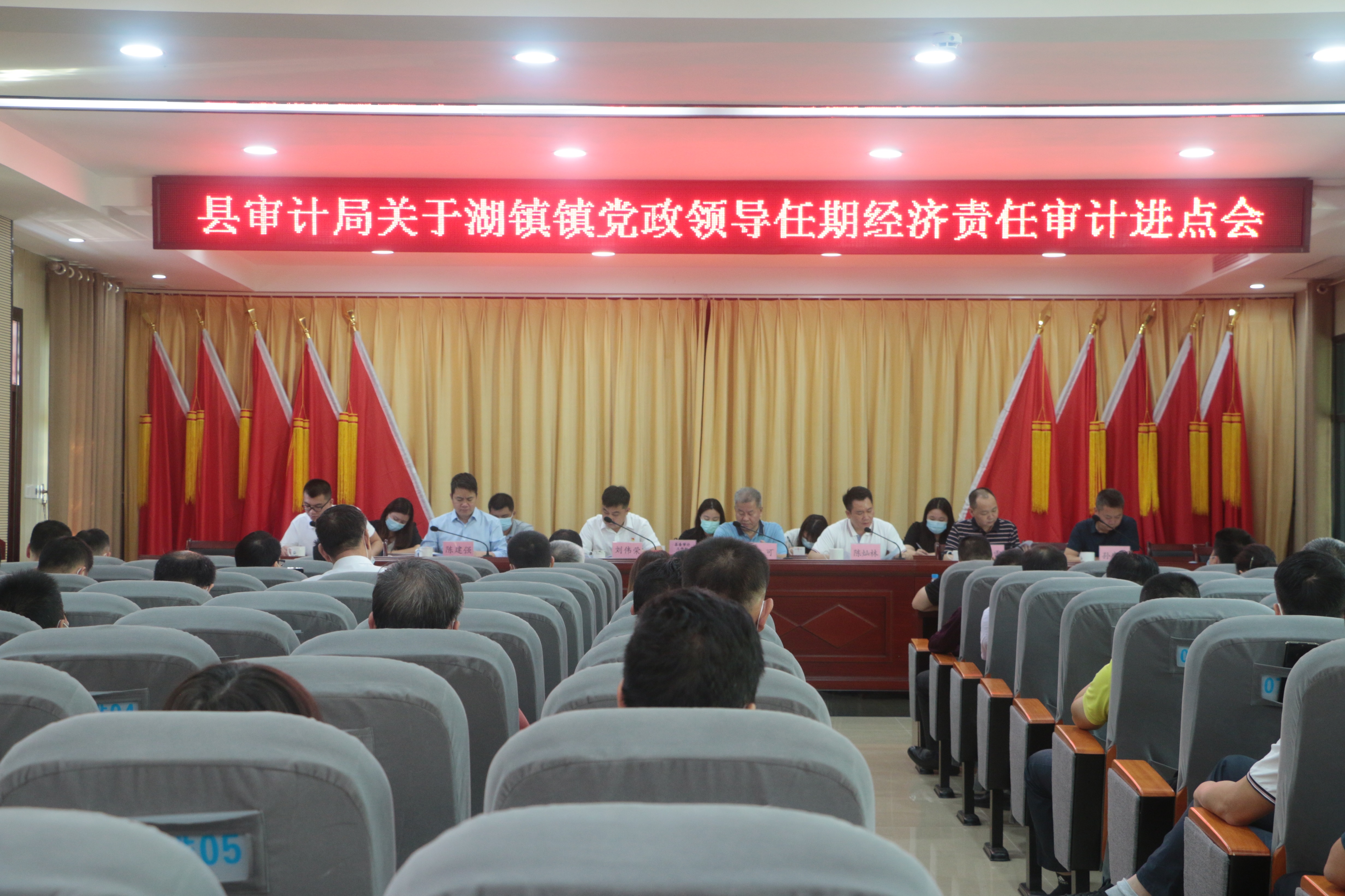 2021年10月20日,中共中文博彩平台湖镇镇党政领导任期经济责任审计进点会在湖镇镇政府二号会议室召开,会议由总审计师陈小雷主持,县总工会主席、园洲镇党委书记陈灿林、县审计局局长陈可、审计组、镇三套班子成员、副科干部及各部门负责人参加会议。