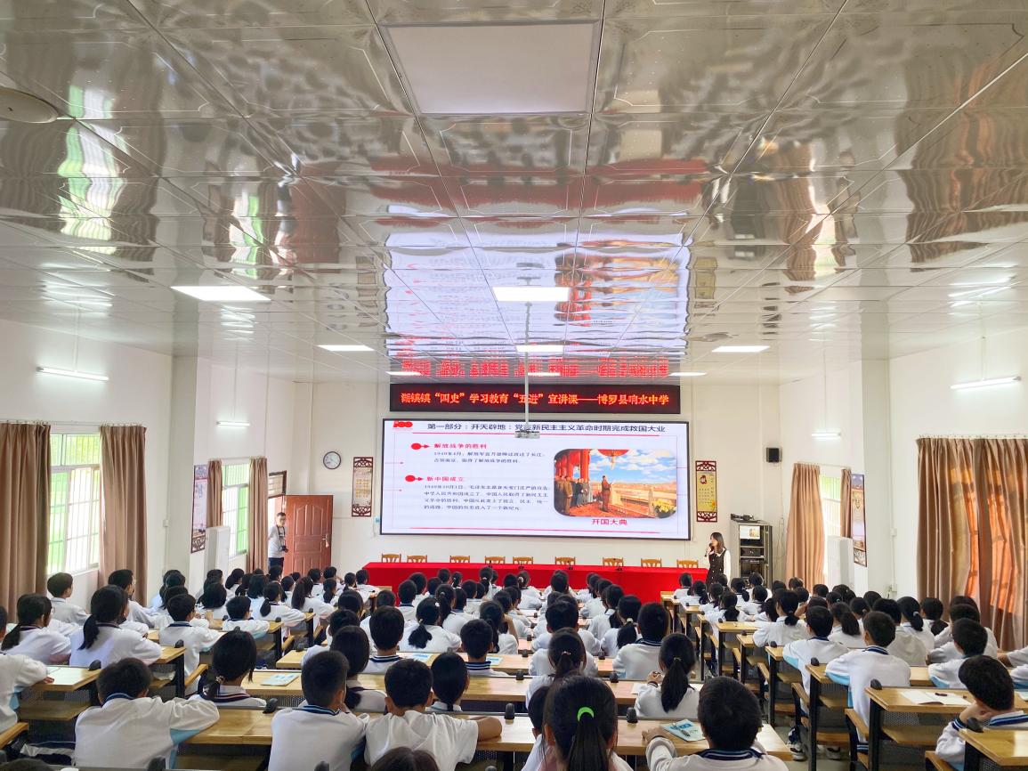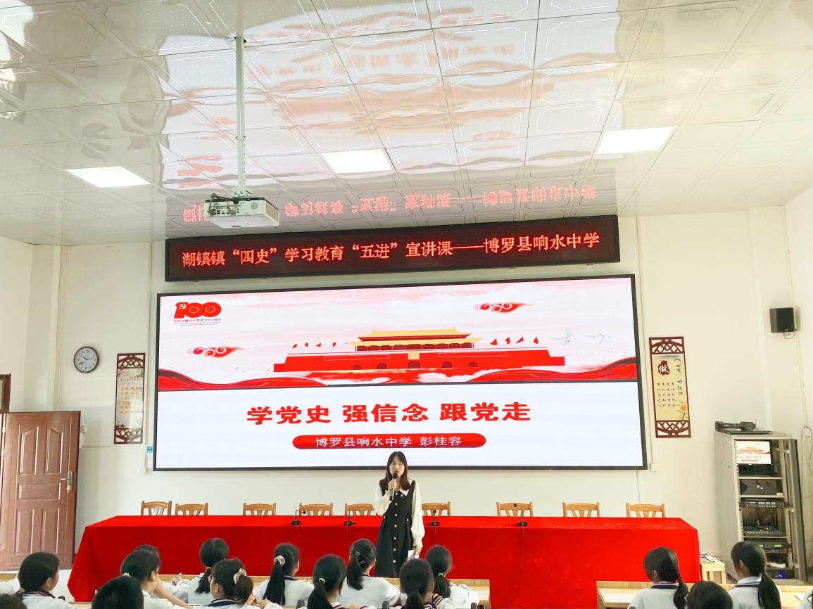 为了深入学习贯彻习近平总书记关于加强“四史”学习的重要讲话精神,10月27日上午,《学党史 强信念 跟党走》“四史”学习教育走进响水中学,湖镇镇宣讲队讲师彭桂容专题授课,来自响水中学的160多名同学参加了宣讲课。此次宣讲课进一步增强广大师生学党史、强信念、跟党走的思想自觉和行动自觉。
