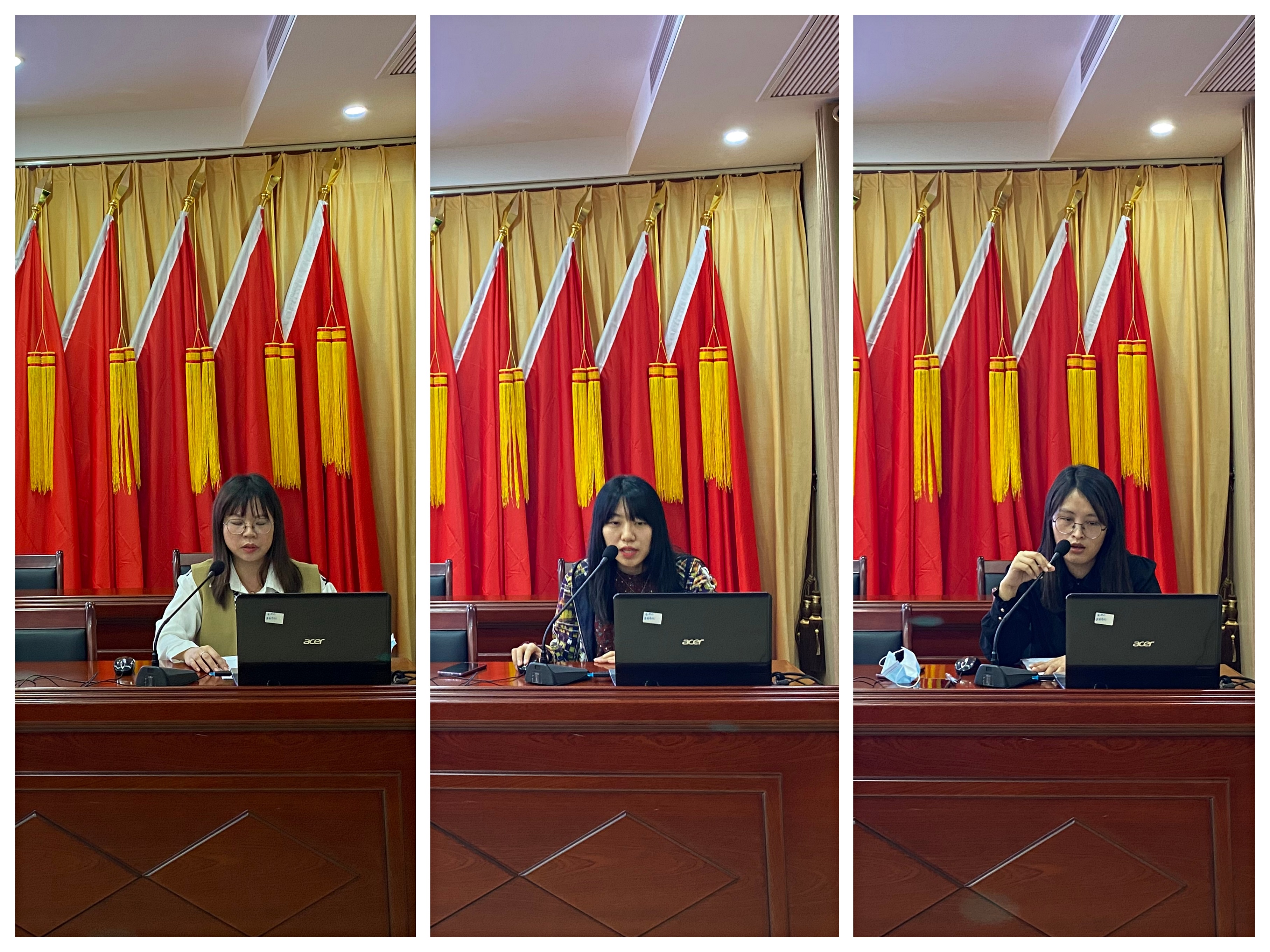 镇党政办收文员陈锦燕讲解了我镇的收文流程、介绍OA系统的界面、收文的相关操作等;发文员张玉静讲解了线上线下两种发文流程,解答了各部门在发文过程中所遇到的常见问题;保密员杨瑜环通过举例违法案件的方式引入主题,介绍了保密工作的相关法律及涉密文件的相关处理流程等。