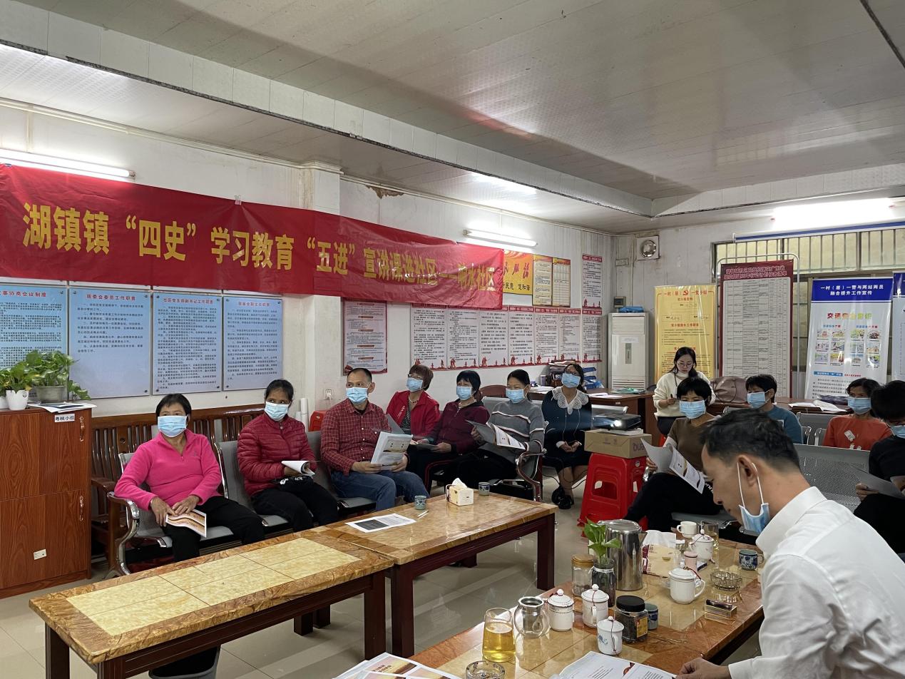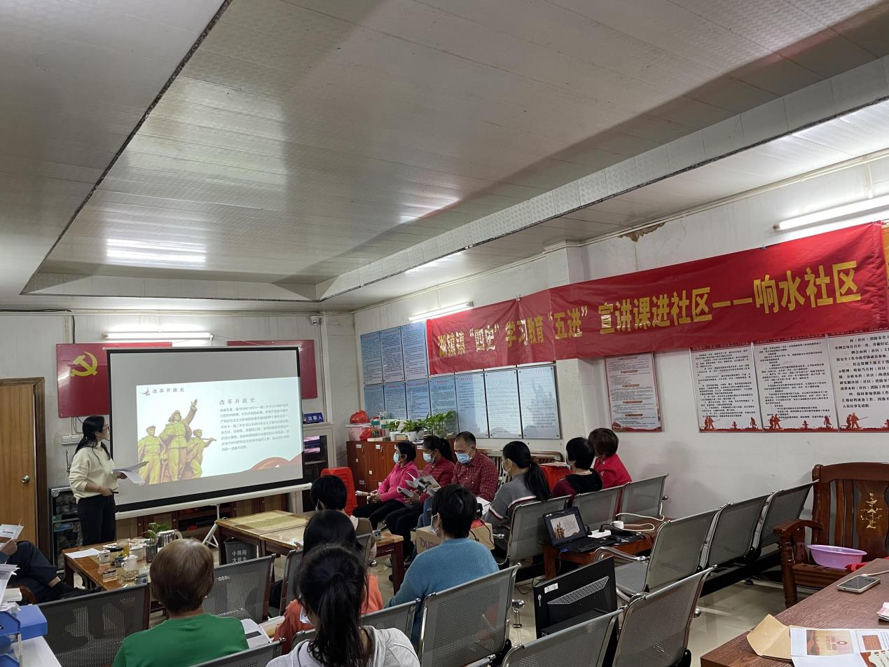 为持续推动党史学习教育和“四史”宣传教育走实走深,引导党员干部及广大群众知史爱党、知史爱国,11月17日上午,镇党史学习教育宣讲队讲师陈敏在湖镇镇响水社区开展“四史”进社区宣讲。响水社区驻村团队、社区“两委”干部、党员及群众代表30余人参加此次宣讲课。