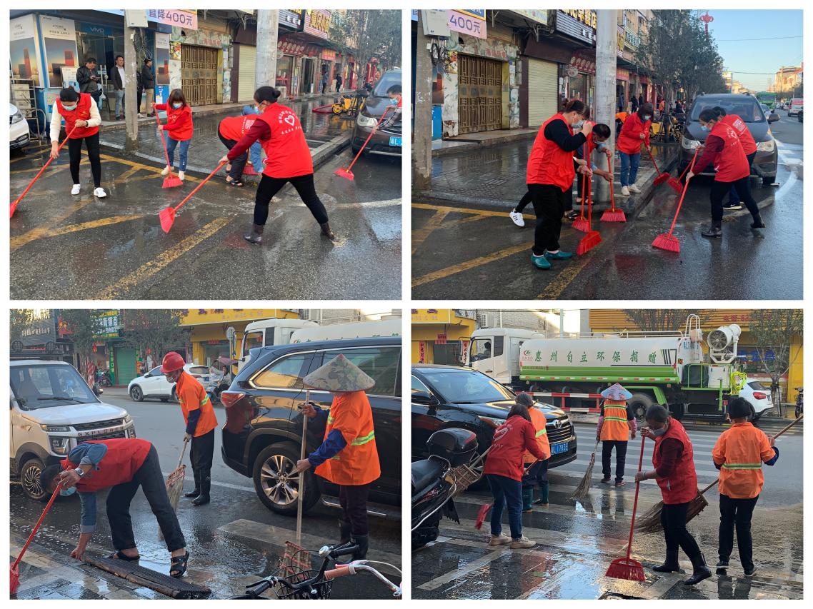 环卫工人和志愿者,是文明城市创建的生力军、是一座城市的文明标杆。环卫站派出环卫工人和洒水车清洗路面,志愿者们积极协助清扫工作,针对圩镇范围内的顽固污迹、垃圾、路面沙土等进行了集中清扫和清洗,确保道路环境见底色见本色,无死角无堆物,无破损无残缺。
