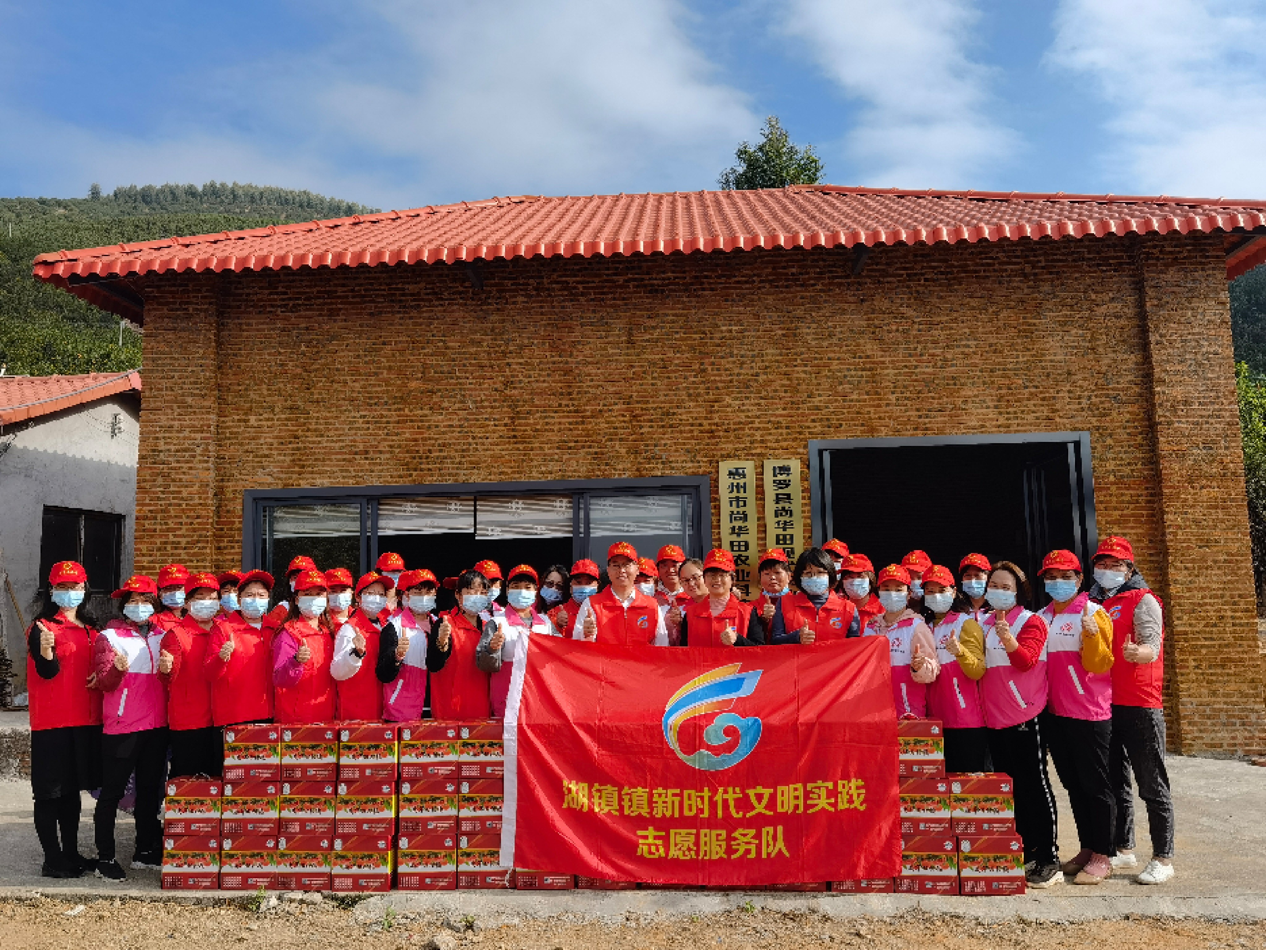 时下正值湖镇镇柑橘进入丰收期,由于人员不够,成本较高等原因,部分果农采摘成了一大难题。 12月14日上午,湖镇镇新时代文明实践联合湖镇镇妇联、团委组织志愿者们迅速成立了志愿采摘队,前往惠州市尚华田农业科技有限公司开展助农活动。湖镇镇党委副书记苏超强,党委委员黄碧萍出席活动。