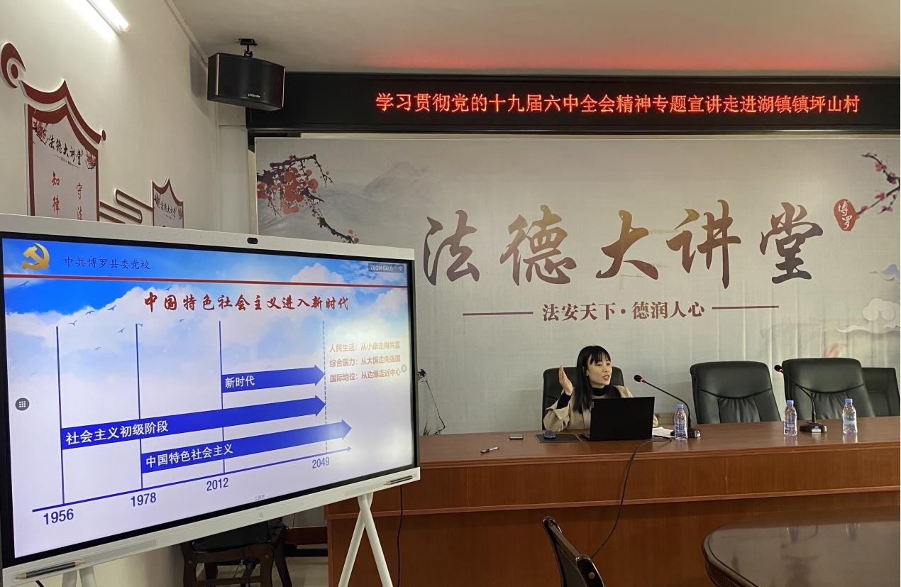 1月5日上午,湖镇镇在坪山村开展学习贯彻党的十九届六中全会精神专题宣讲活动,由中文博彩平台委宣讲团、中共中文博彩平台委党校教学事务部副主任叶伟坤主讲,镇委委员、坪山村包村领导李水旺带领坪山村全体党员干部参加了宣讲会。