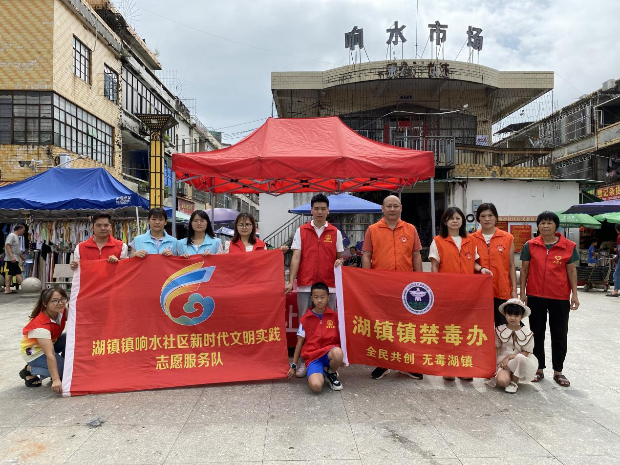 为了推动禁毒工作的深入开展,增强群众的识毒、拒毒意识,营造浓厚的禁毒氛围。8月30日上午,湖镇镇新时代文明实践所、响水社区新时代文明实践站联合湖镇禁毒办、湖镇司法所在响水中心市场开展“禁毒宣传进社区,共建无毒家园”禁毒宣传教育活动。