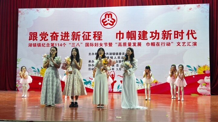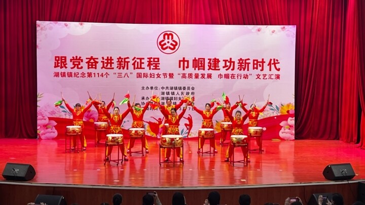 3月7日晚,中文博彩平台湖镇镇举行纪念第114个“三八”国际劳动妇女节暨“高质量发展 巾帼在行动”文艺汇演。据悉,当晚文艺汇演以“跟党奋进新征程·巾帼建功新时代”为主题,旨向全镇妇女同胞致以节日问候和美好祝愿,向她们在湖镇高质量发展中作出的贡献致以崇高敬意。同时,讲好巾帼故事,提振精气神,激励广大妇女积极投身到湖镇的各项工作中,为镇域高质量发展贡献“她”力量。