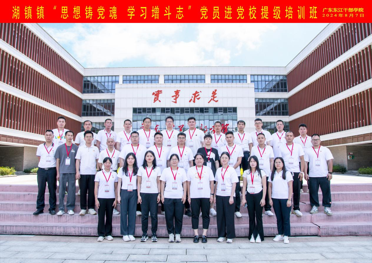 进一步筑牢党员思想根基,提高党性修养,8月7日—9日,湖镇镇在广东东江干部学院举办2024年度“思想铸党魂、学习增斗志”党员进党校提级培训班,共有32名党员参加此次培训。