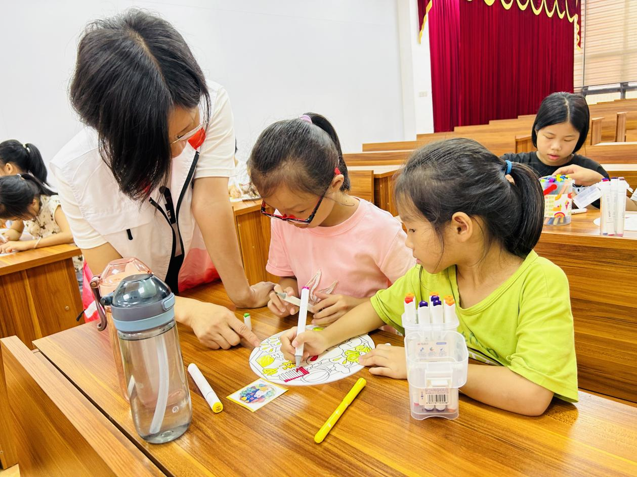 活动中,志愿者老师通过绘本故事、图片、视频等形式让孩子们了解了中秋节的来历与习俗,随后又为同学们讲解团扇的历史背景、制作工艺以及文化内涵,普及了传统团扇的基础知识。在志愿者老师的指导下,小朋友们小心翼翼地用画笔轻触颜料,全神贯注地在扇面上勾勒线条、填充色彩,即便手指不经意间沾上了颜料也浑然不觉,沉浸在自己的创意世界中。他们发挥无限的想象力与创造力,将内心的憧憬与对中秋的独特情感,通过一笔一画细腻地展现在团扇之上。每一幅作品都独一无二,散发着孩子们纯真无邪的魅力与对传统文化的热爱。