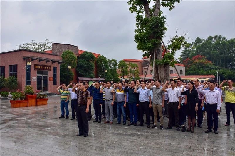 在党建馆前面广场上,面对党旗,在孙立武同志的领誓下,罗浮山景区全体党员举起右拳,庄严宣誓。