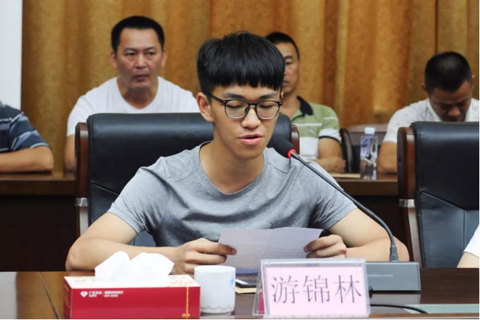 座谈会上,学生代表游锦林、张铭基、黄紫莎三名同学,分别向参会人员分享了高中时期的学习心得和表达了对大学生活的向往。