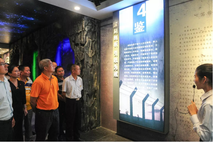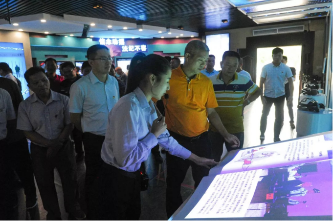 在讲解员的引领下,全体党员干部认真参观有关廉政教育的图片、文字和视频,详细地听取了讲解员的讲解。基地运用声、光、电、多媒体等多种形式,辅以警世钟、勿入“钱眼儿”、纪律的高压线、牢笼等场景造型,将反面案例的警醒作用呈现出来。通过触目惊心的犯罪事实,发人深思的心灵忏悔,直观地看到了违纪、违法贪污腐败者所付出的沉痛代价,强烈地震撼了每一位党员干部的灵魂,给大家注入了一剂“清心剂”。