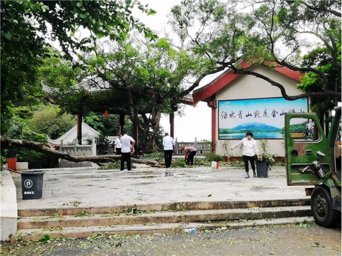 台风过后,罗浮山景区领导干部迅速组织有关工作人员和环卫工人清理景区、村道环境卫生,第一时间排查台风过后的相关隐患问题以及有无人员伤亡等情况,全力进行减灾抢险等工作。