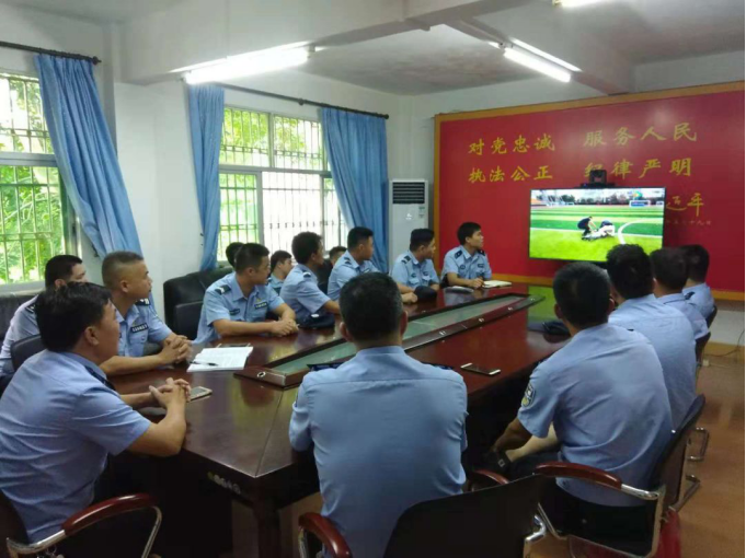 动员会结束后,罗浮山派出所全体民警、协警观看学习战术技能及警械使用培训视频。