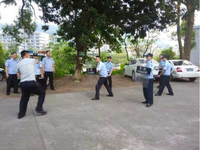 观看学习培训视频后,全体参训人员进行队列训练及警械操作训练。
