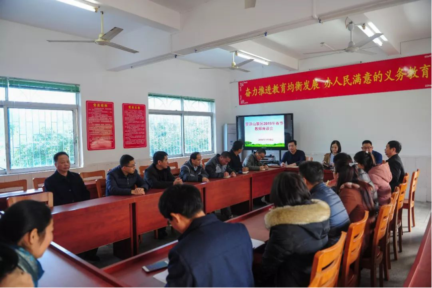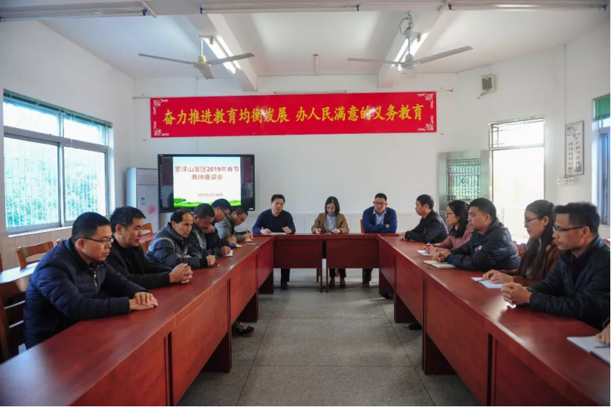 1月18日上午,罗浮山召开2019年春节教师座谈会,罗浮山党委委员、管委会副主任沈文芳、社会事务科科长王国强、罗浮山中心学校校长徐桂全及各村学校教师代表参与了此次会议。