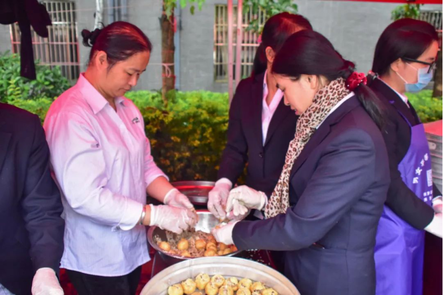 活动现场热闹非凡,只见大家纷纷撸起袖子,系上围裙,亲自下厨,各显身手,展现自己的厨艺。各种美食的香味充斥着整个现场,不禁让人口水直流,就连路过的村民都忍不住望一望。