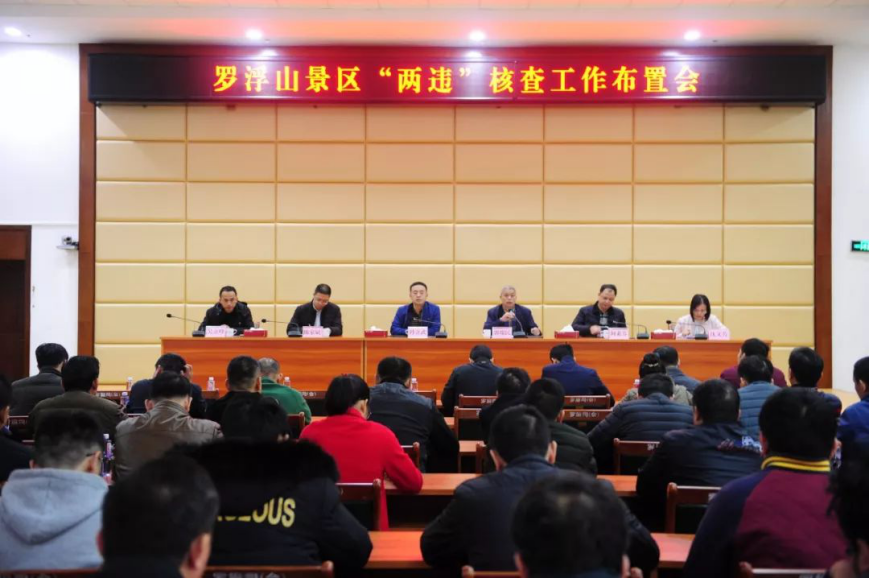 2月25日下午,罗浮山景区召开“两违”核查工作布置会。景区党委和管委会班子成员、管委会全体包村干部、纪检组、景监大队、规建科、派出所、村(社区)“两委”干部共80人参加了会议。