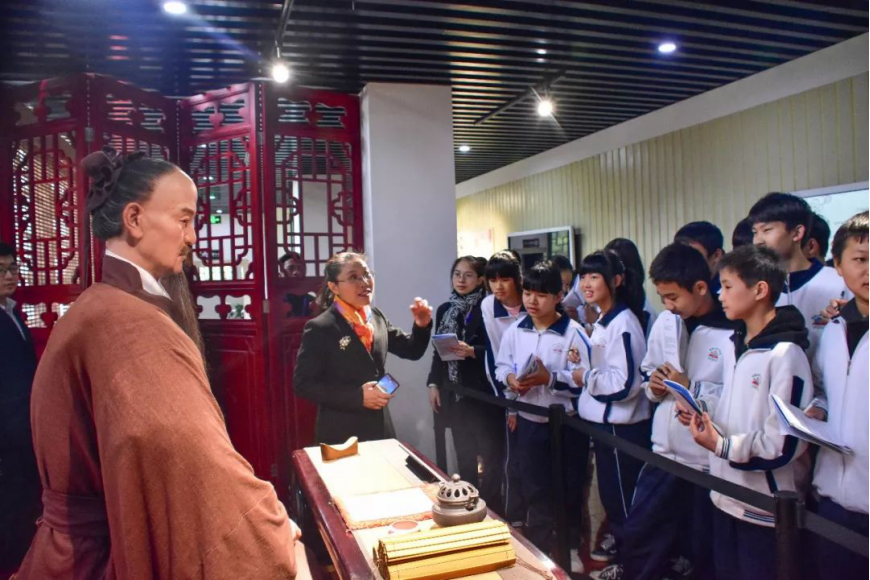 讲解员在和学生互动