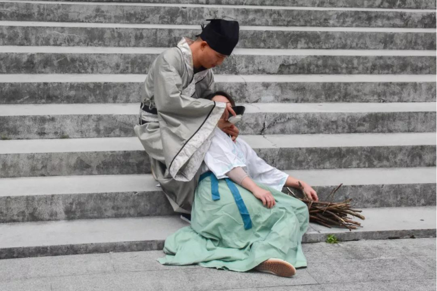 工作人员在演绎葛洪救人的情景