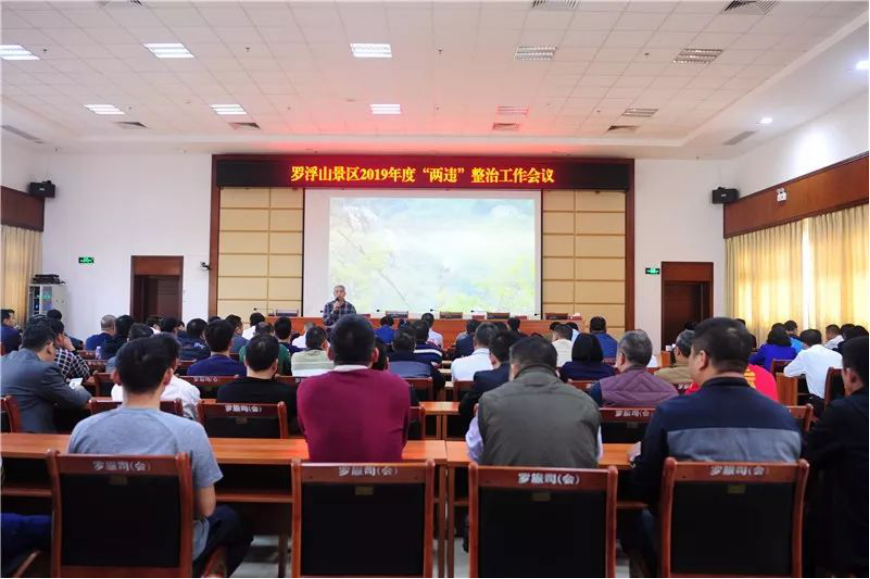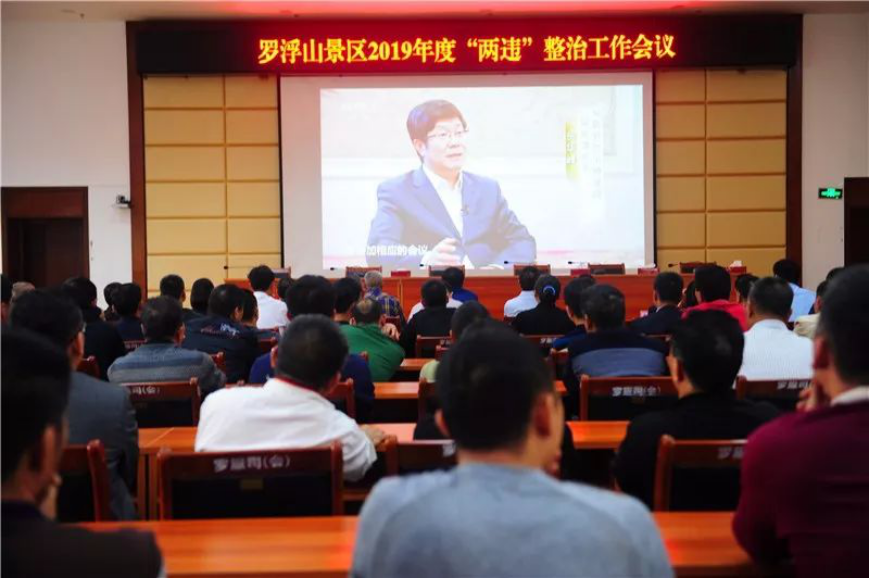 2019年2月15日下午3点,罗浮山景区2019年度“两违”整治工作会议在罗浮山管委会三楼会议室召开。景区党委和管委会班子成员、各科室(部门)正副职以上人员、旅游公司经理级以上人员、各村(社区)“两委”干部、小组干部、各党总支部、罗浮山学校支部共100多人参加了会议,会议由景区党委副书记、管委会常务副主任郭瑞民同志主持。