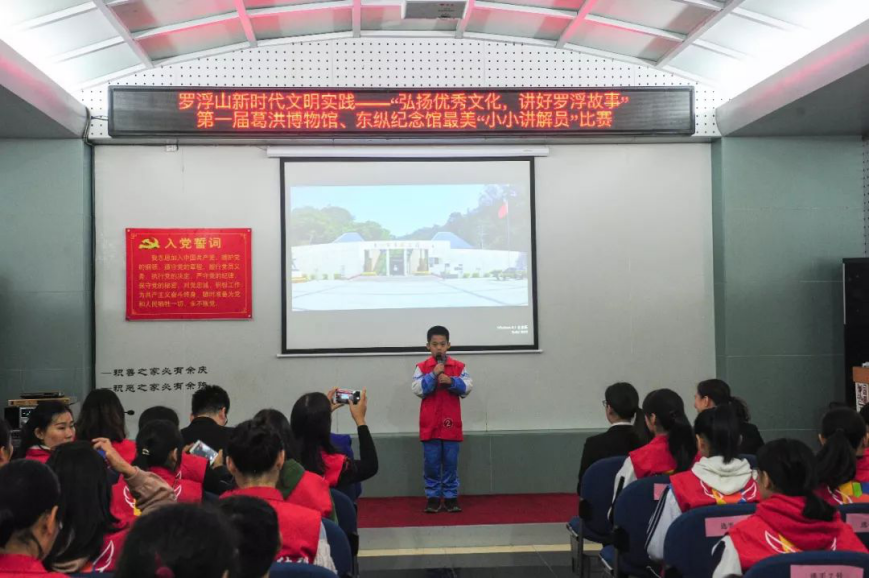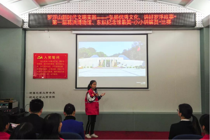 为发挥葛洪博物馆、东纵纪念馆“广东省爱国主义教育基地”和“中文博彩平台青少年校外教育实践示范基地”教育功能,引导青少年深刻学习红色文化和中华优秀传统文化,罗浮山在寒暑假及节假日定期组织青少年志愿者到两馆担任小小讲解员,志愿活动内容包括讲解东江纵队的历史背景与过程、葛洪的生平、青蒿治疟、百草油文化等中草药知识,介绍馆内的珍贵展品,积极维持秩序,引导游客文明参观等,志愿讲解服务提升了青少年的道德思想修养,也激发了青少年的爱国热情,为青少年将来走好新时代的长征路打下了坚实的基础。
