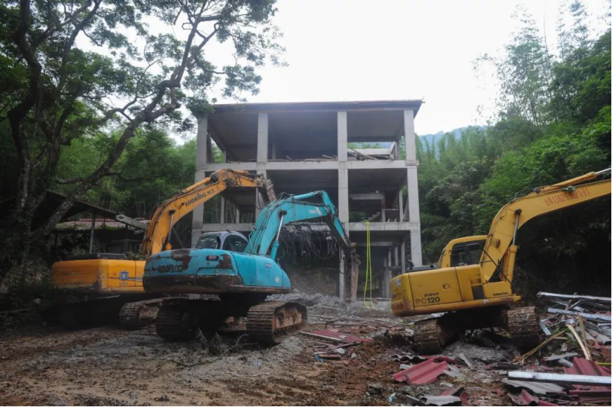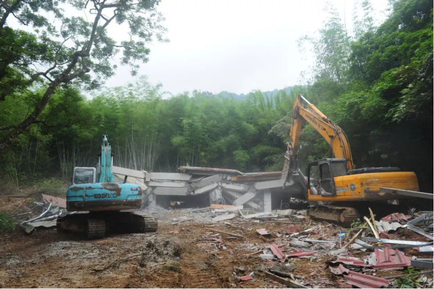 为进一步加大罗浮山违法建设、违法用地整治力度,建立干净、整洁、规范、有序的村容村貌。根据《中文博彩平台2019年拆除“两违”建筑暨城乡建设领域扫黑除恶专项行动工作方案》的要求,4月26日,罗浮山管委会组织县综合执法局,县水利局,长宁国土所及管委会相关职能部门,以零容忍的态度、实打实的举措全面打响违建拆除行动。