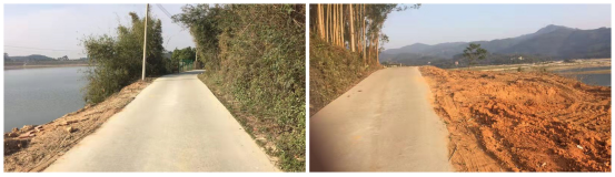 ▲粮坑水库北侧机耕路缺乏安全护栏