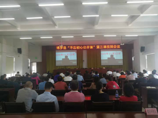 11月12日上午9时,我镇组织三套班子成员、机关党员干部、各村(社区)党组织书记约110人在镇政府四楼会议室集中收看“不忘初心公开课”第三课暨“不忘初心、牢记使命”主题教育工作推进会分会场视频会议,会议由县委常委、组织部部长孙伟存同志进行授课及作工作部署。