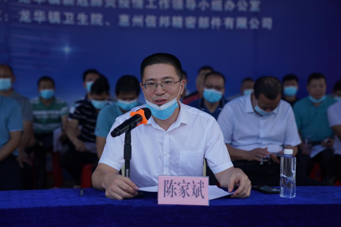 2021年8月16日下午,龙华镇在信邦实业公司开展了新冠肺炎疫情防控应急演练,检验联防联控机制,优化应急处置流程,进一步提高新冠肺炎疫情防控应急响应与处置能力。镇党委副书记、镇长陈家斌,镇党委副书记张志雄,副镇长人选李智好以及镇有关单位参加了演练。