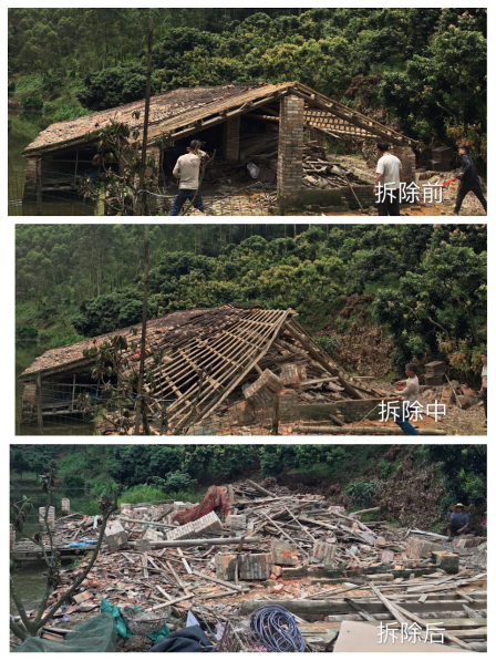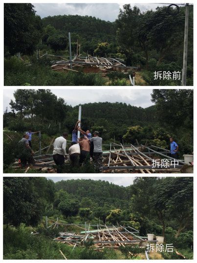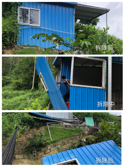 △ 粮坑水库一级水源斑点违法搭建(斑点41处)拆除情况