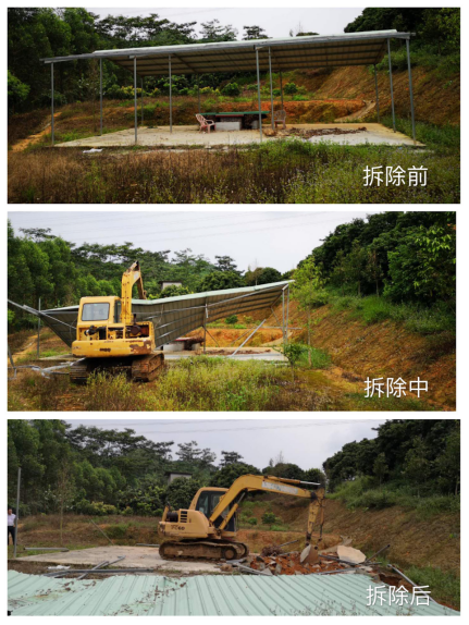 △ 粮坑水库一级水源斑点违法搭建(斑点42处)拆除情况