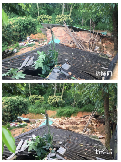 △ 粮坑水库一级水源斑点违法搭建(斑点4处)拆除情况