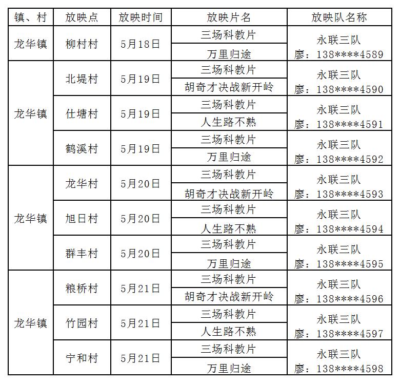 具体放映时间、位置,由村委根据当天情况通知到各小组