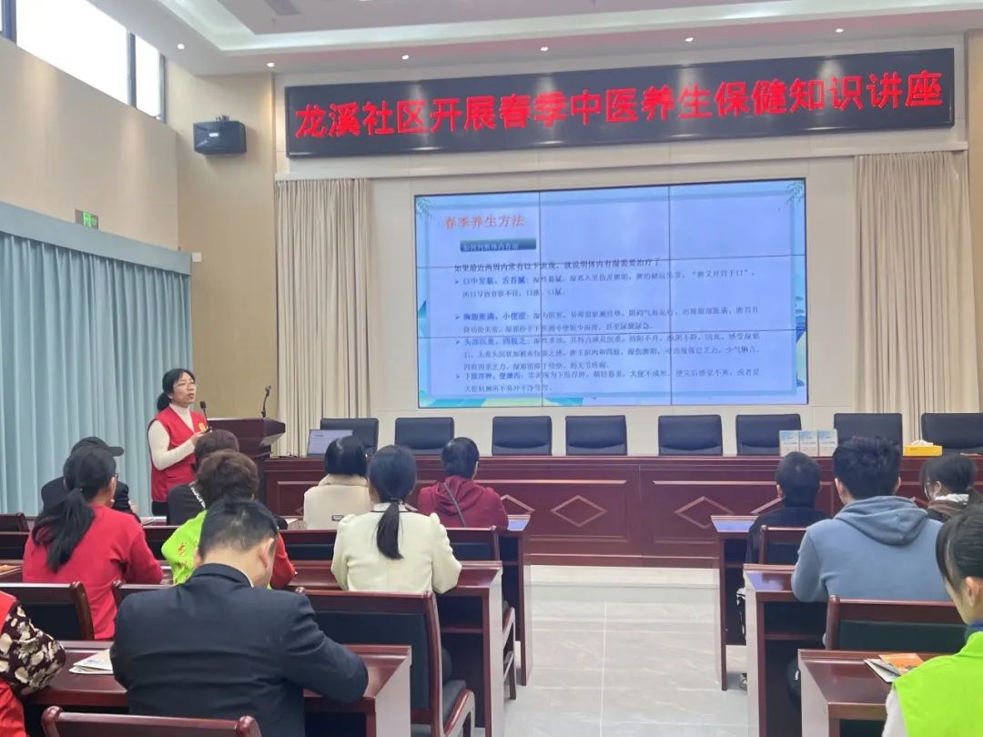 为提高辖区居民健康意识,帮助他们掌握正确的中医养生方法,2月23日上午,龙溪街道龙溪社区新时代文明实践站、龙溪街道社区卫生服务中心联合社区志愿者服务队,在龙溪社区党群服务中心开展春季中医养生保健知识讲座。