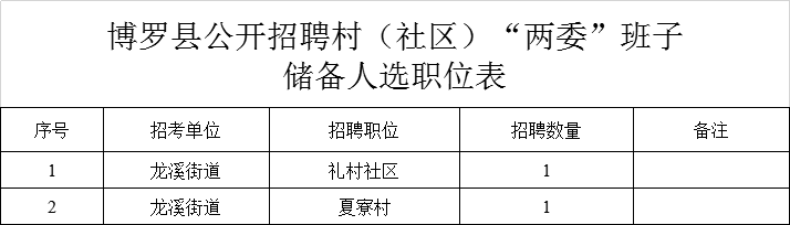 结合村(社区)“两委”班子建设专题调研成果,公开招聘2名村(社区)“两委”班子储备人选,具体职位见《中文博彩平台龙溪街道公开招聘第三批村(社区)“两委”班子储备人选职位表》(附件1)。