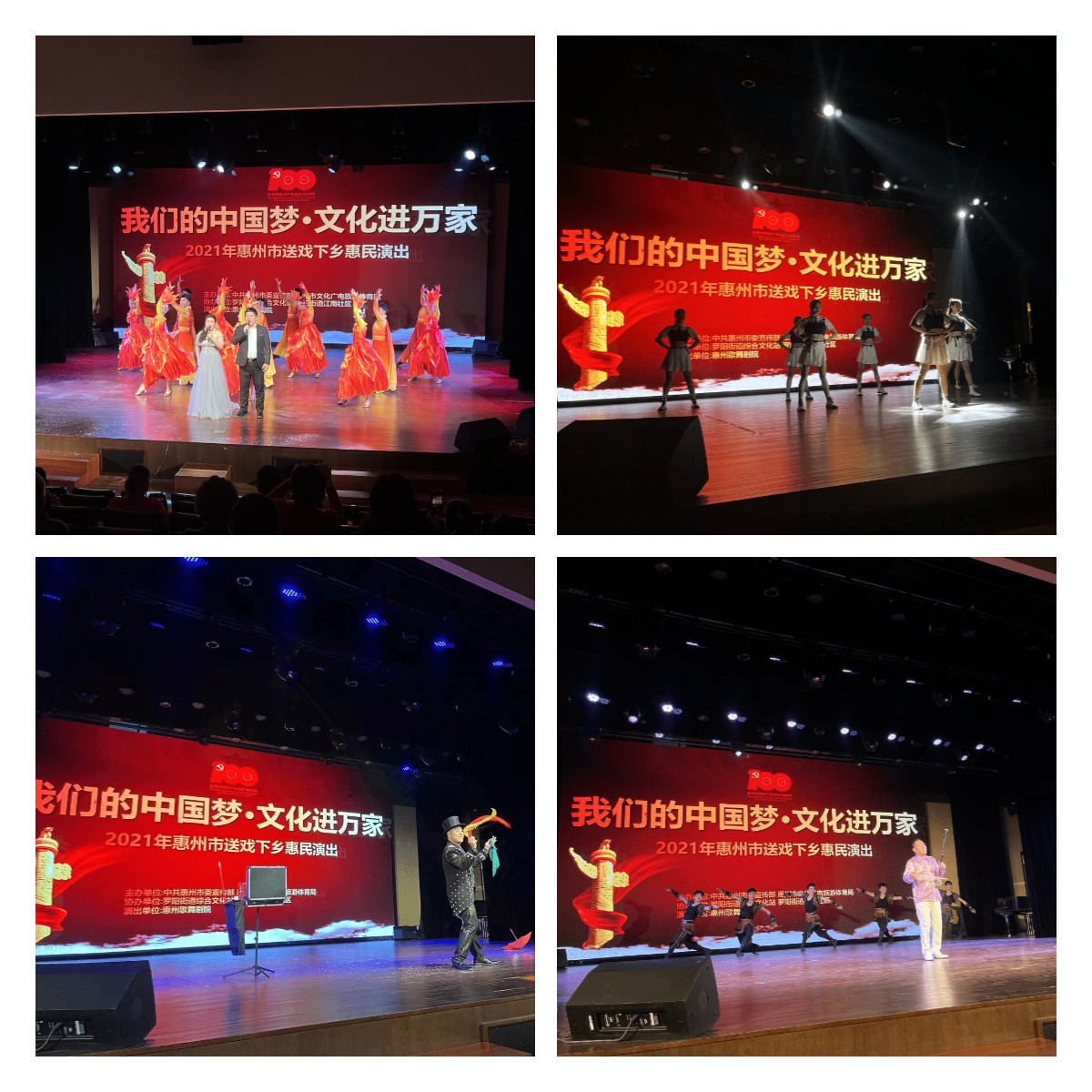 为进一步丰富群众精神文化生活,深入展现罗阳新时代文明实践新气象,罗阳街道小金村、义和社区、江南社区等村(社区)分别于11月17日、25日、26日,组织开展以 “我们的中国梦·文化进万家”为主题的文化下乡活动。本次活动由惠州市委宣传部、惠州市文化广电旅游体育局主办,罗阳街道综合文化服务中心及相关村(社区)共同协办,参演单位为惠州市歌舞剧院。